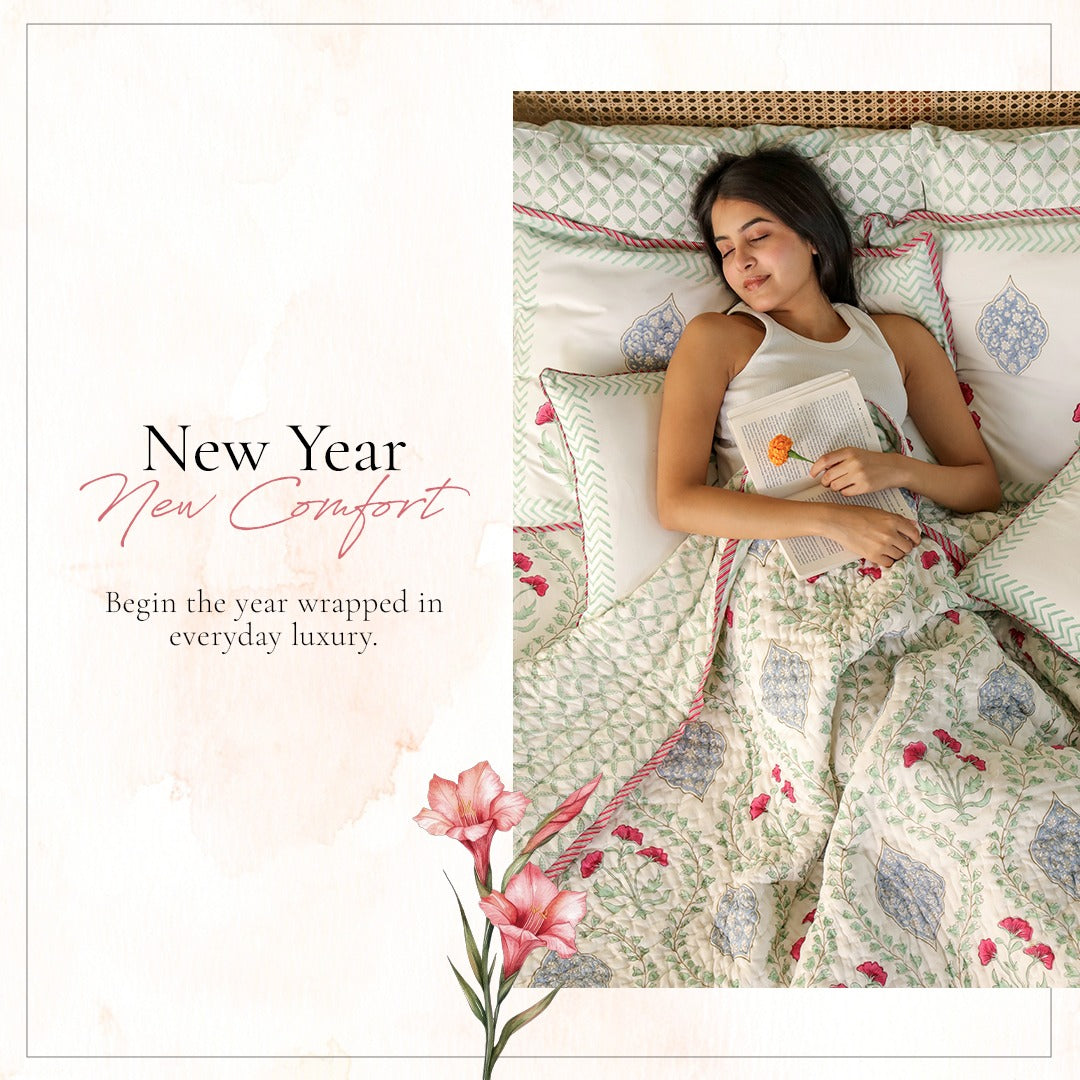 At Paakhi Home, we’re all about cozying up in style. Whether it’s buttery-soft bed sheets, fluffy quilts, snuggly towels, or dreamy rugs – we’ve got your vibe (and your bed) covered.