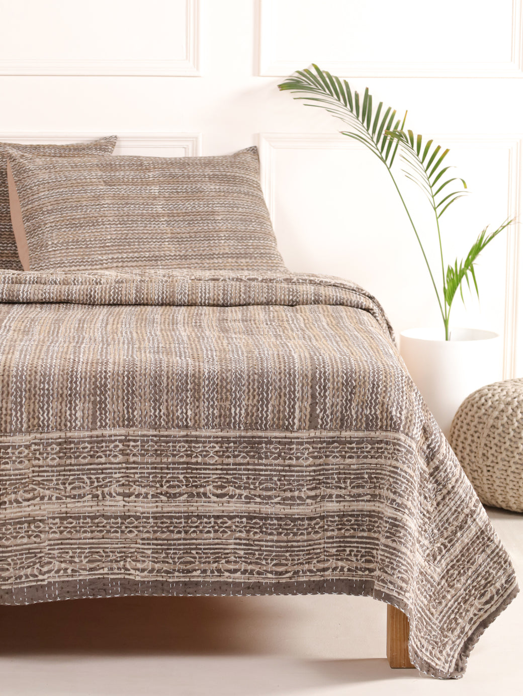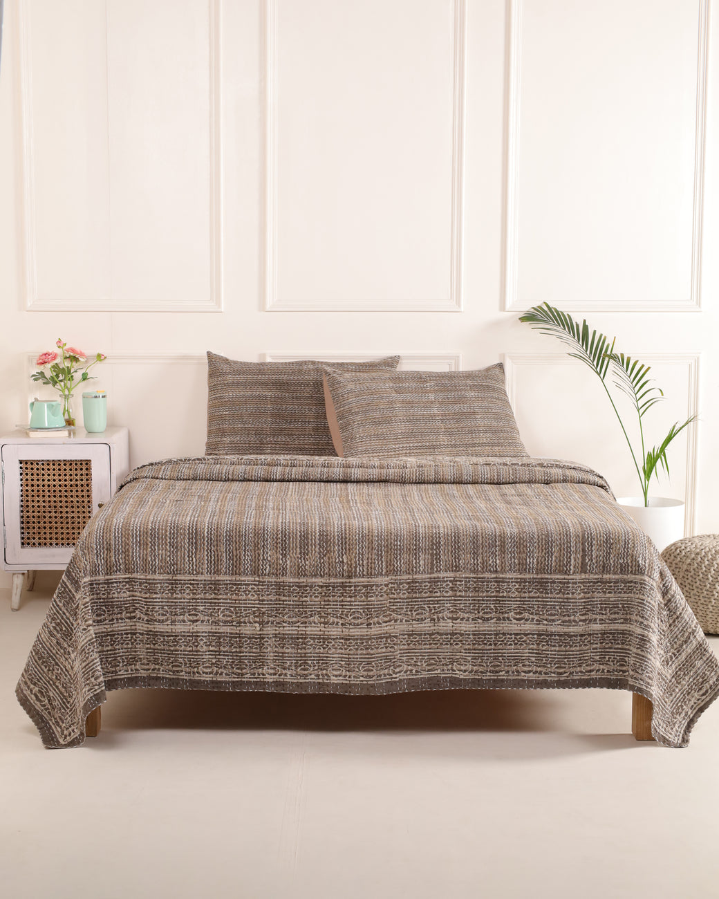 - Set includes 1 pcs Kantha & 2 pcs Pillow Covers
