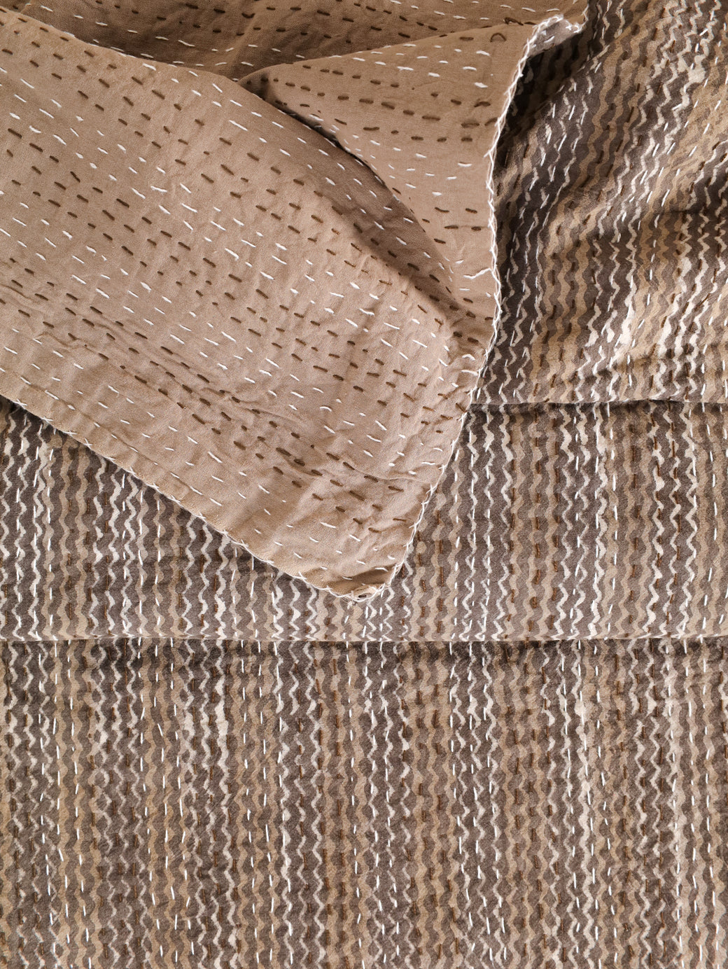 Our hand stitched Kantha can bring any room alive with its vivid colours, stunning print and hand-stitched embroidery. This lightweight quilt is made from two thin layers of cotton sewn together with a traditional type of running stitch called "kantha".