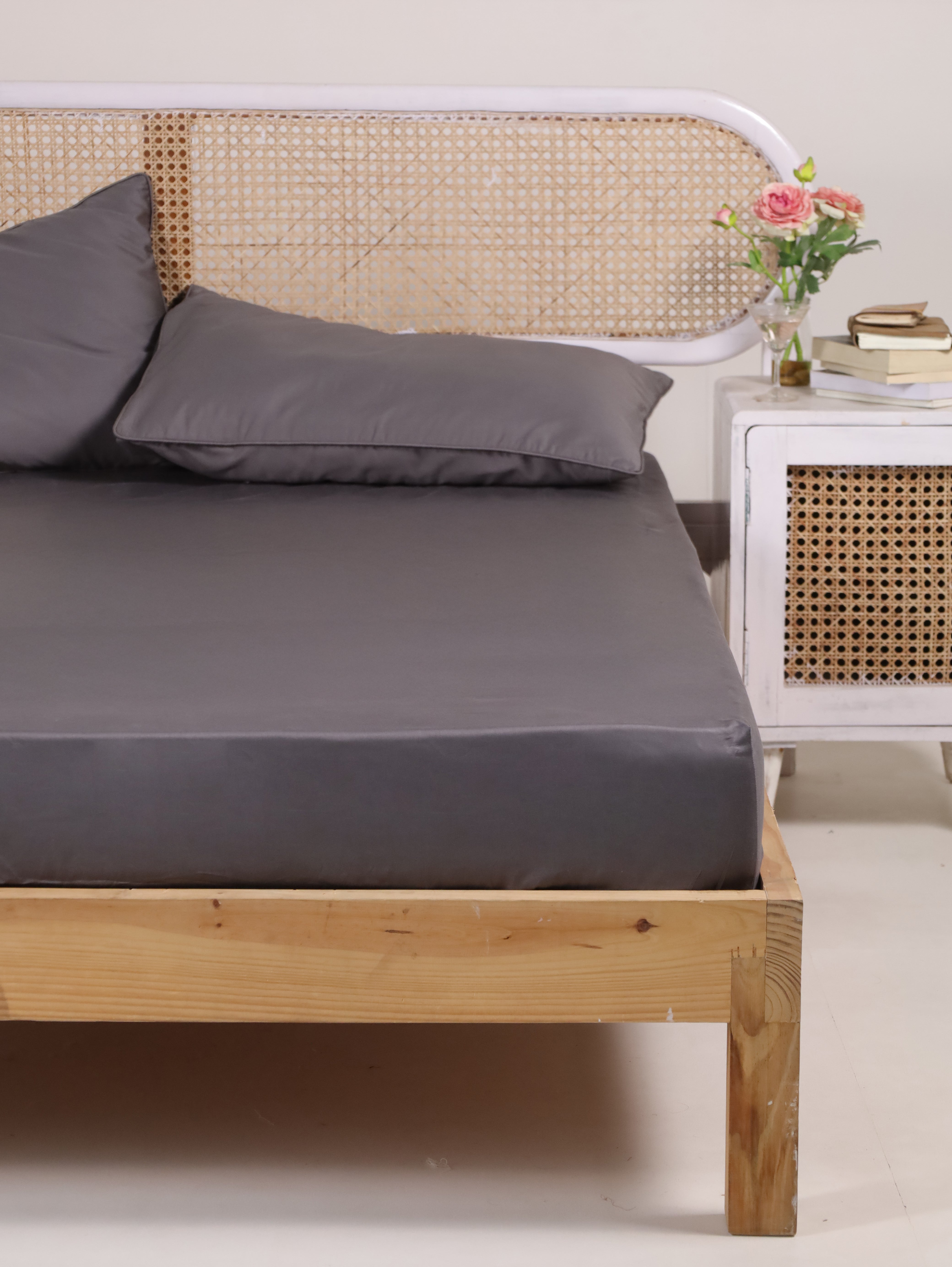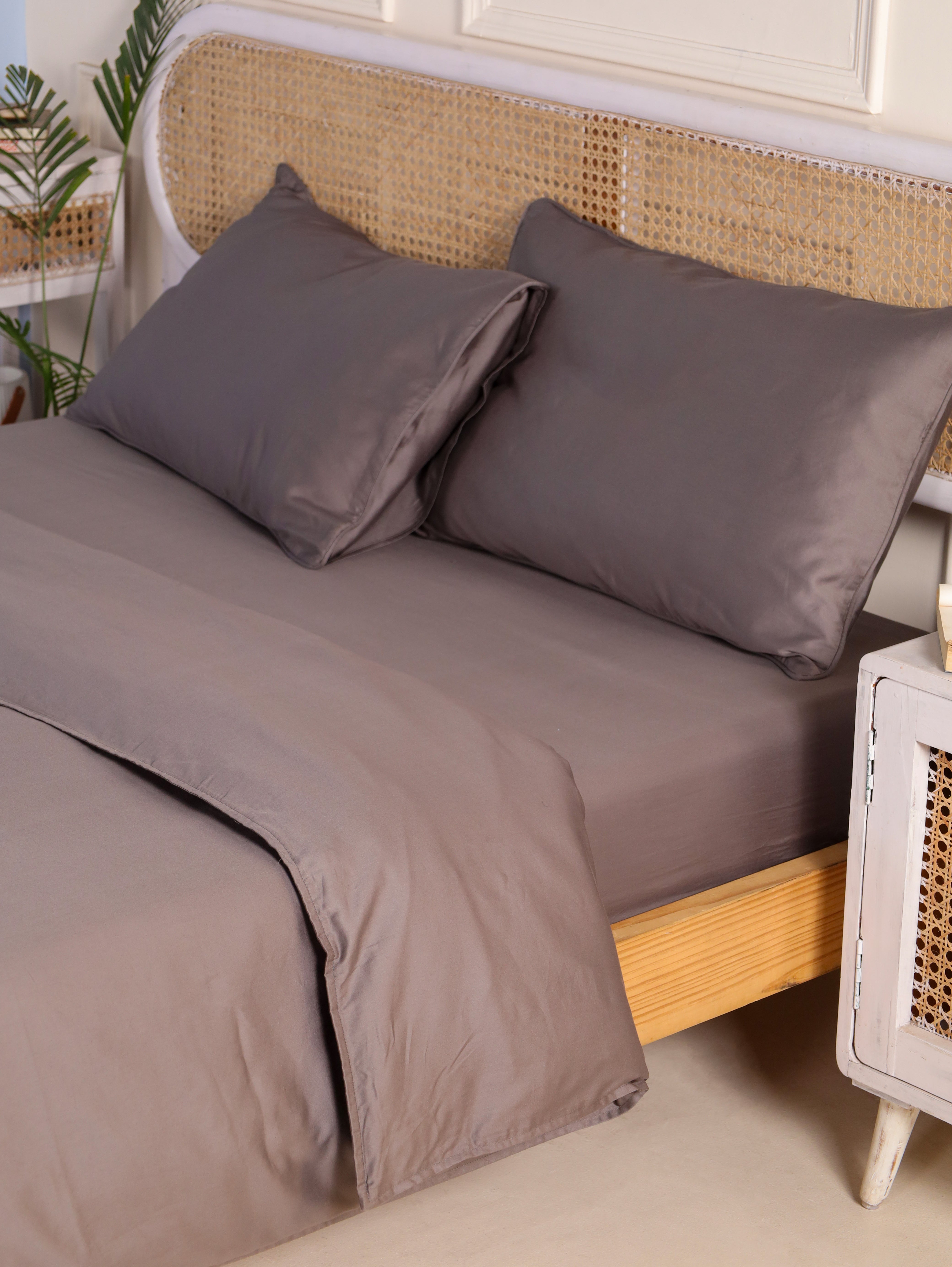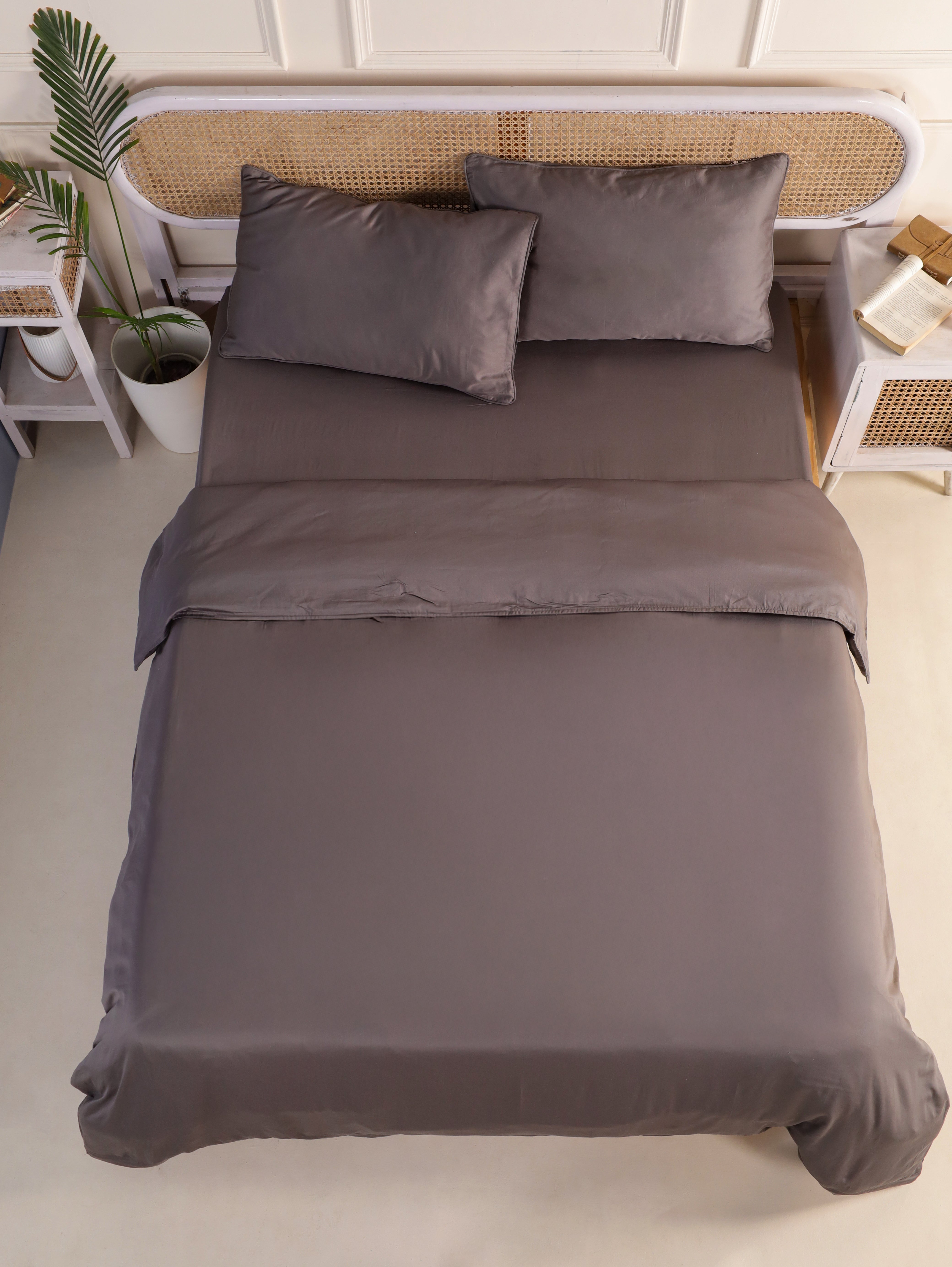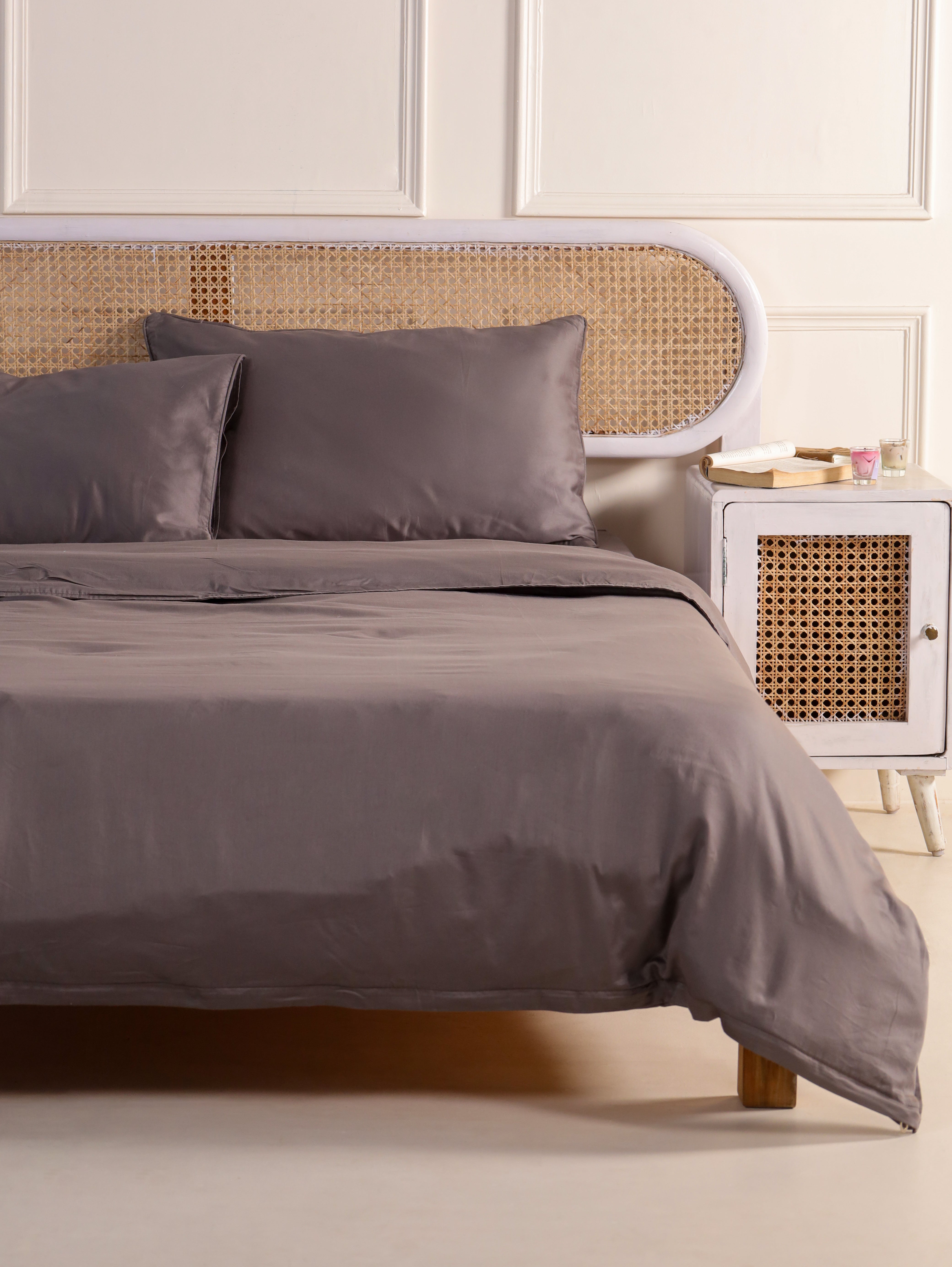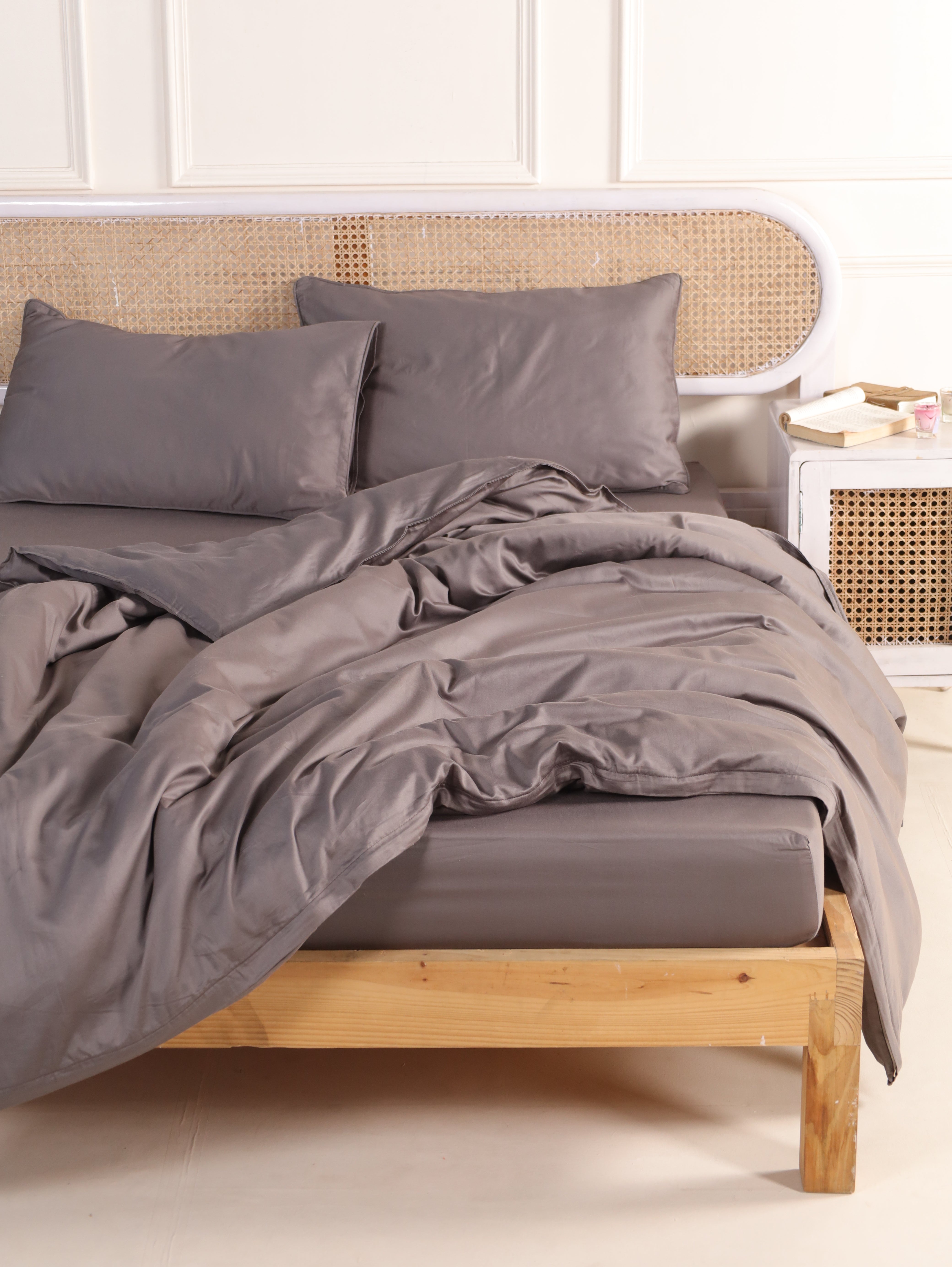 300 TC Quilt Cover, Bedsheet & Pillow covers Set - Ash Grey - 100% Cotton Sateen