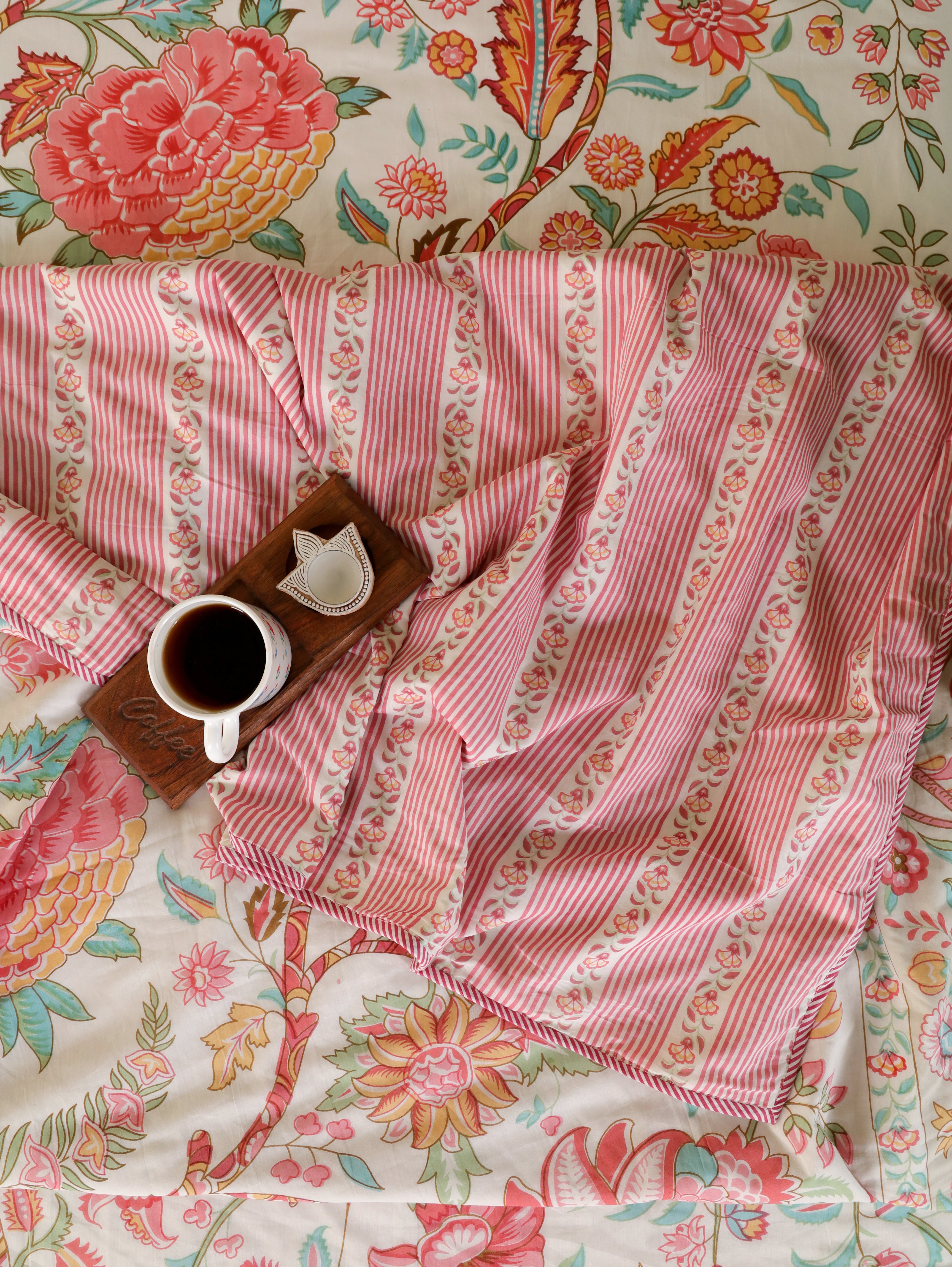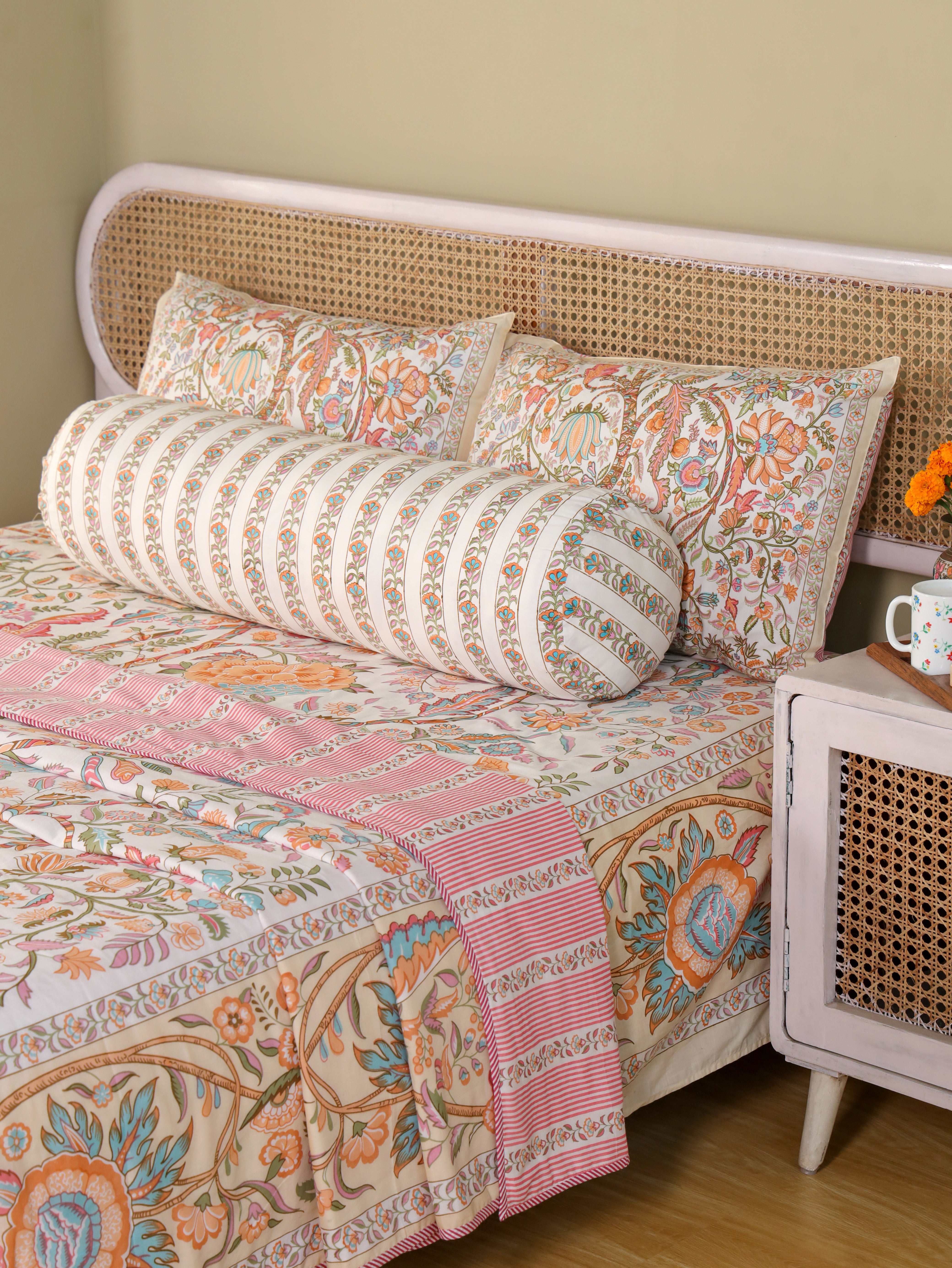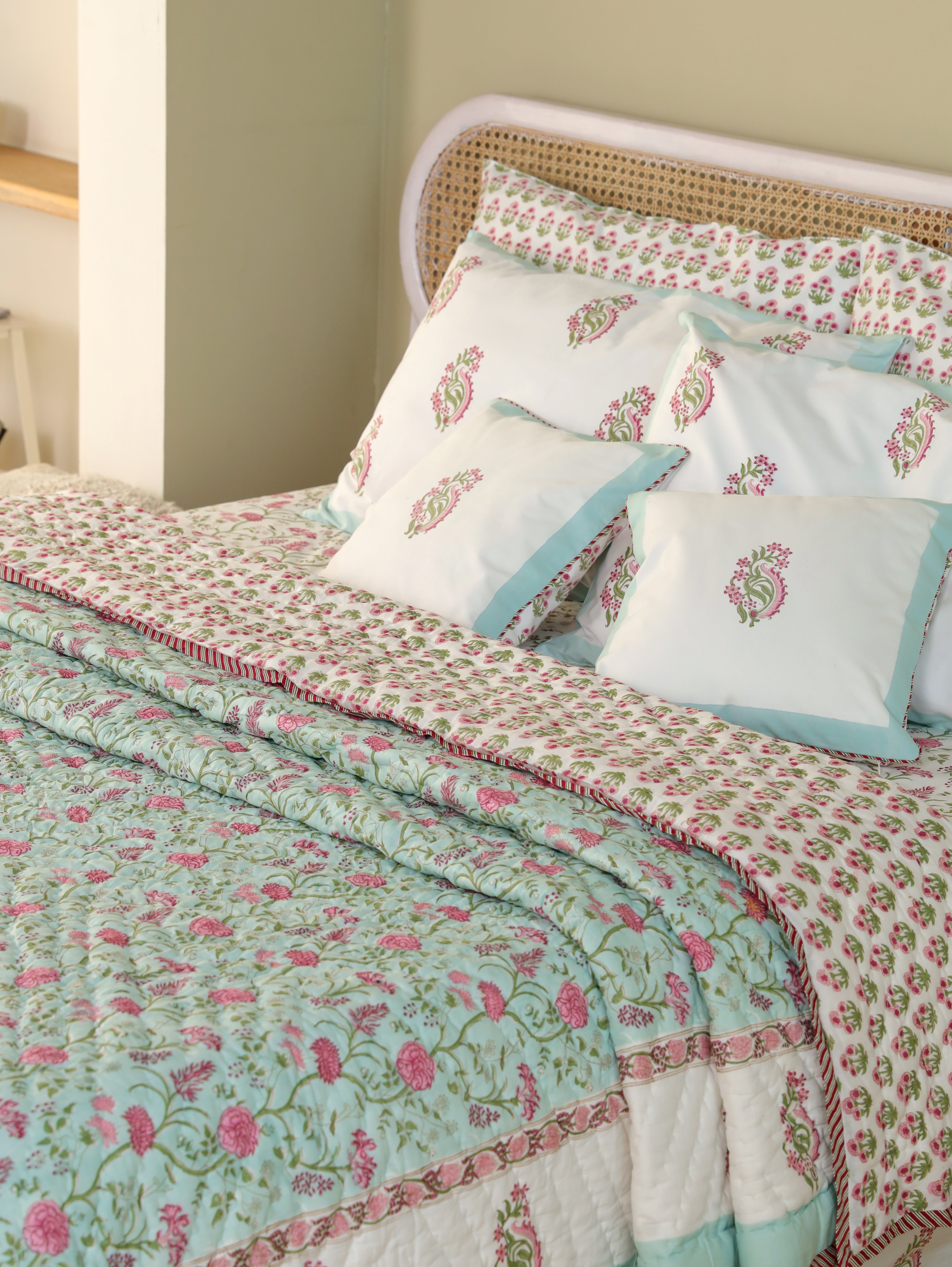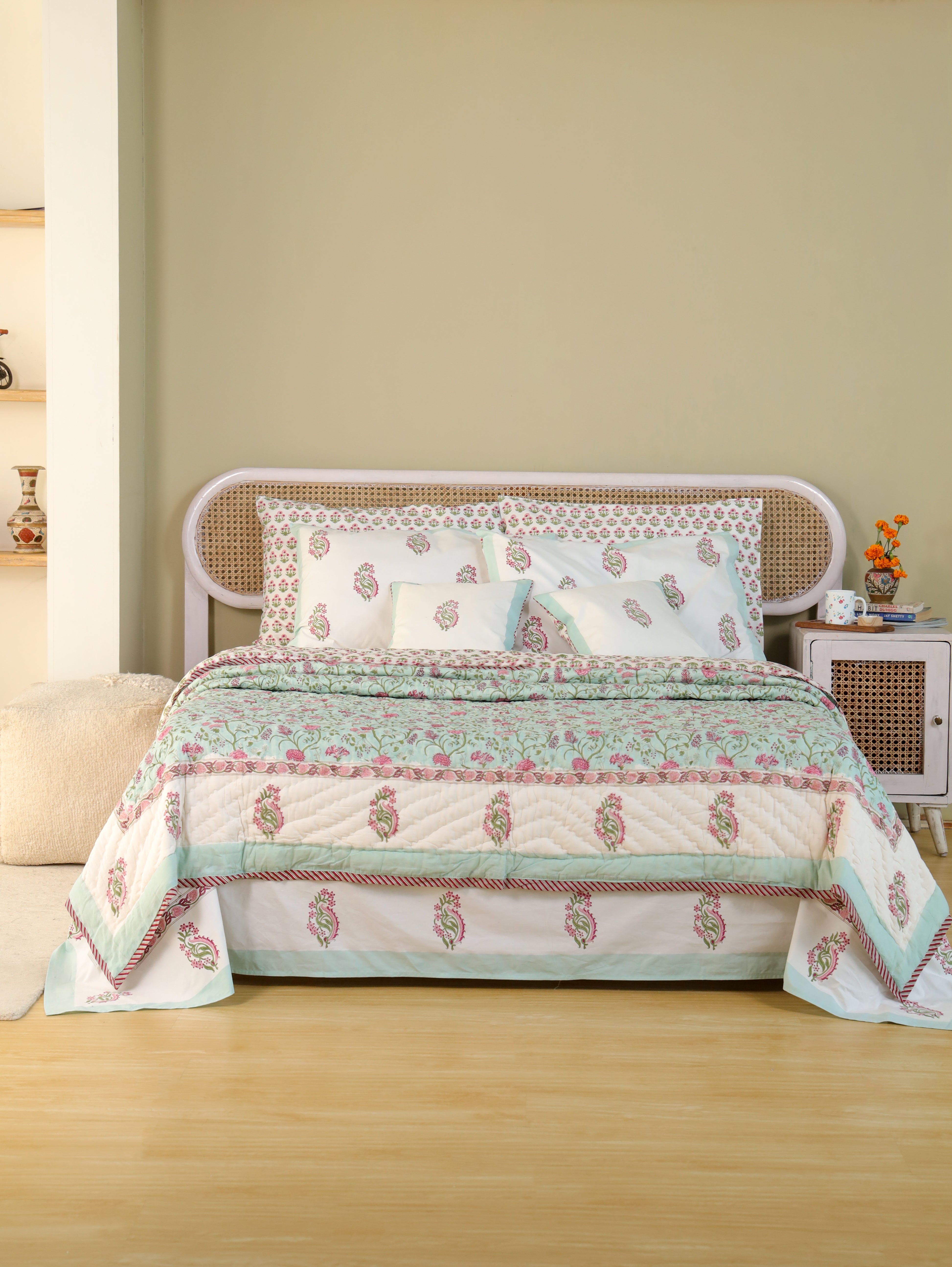 Handblock Printed Quilt, Bedsheet & Pillow Covers Set - Ellen Pale Pink