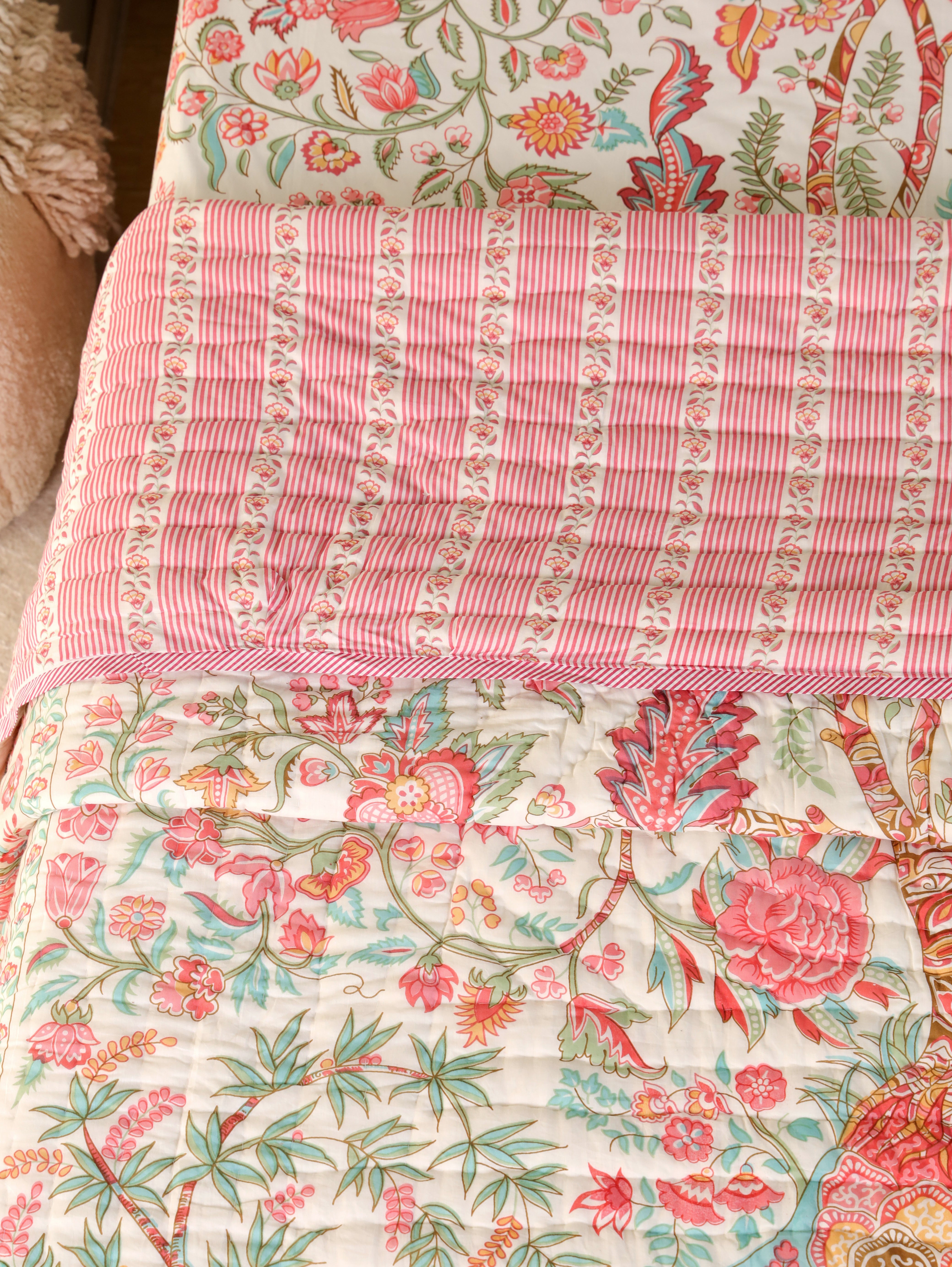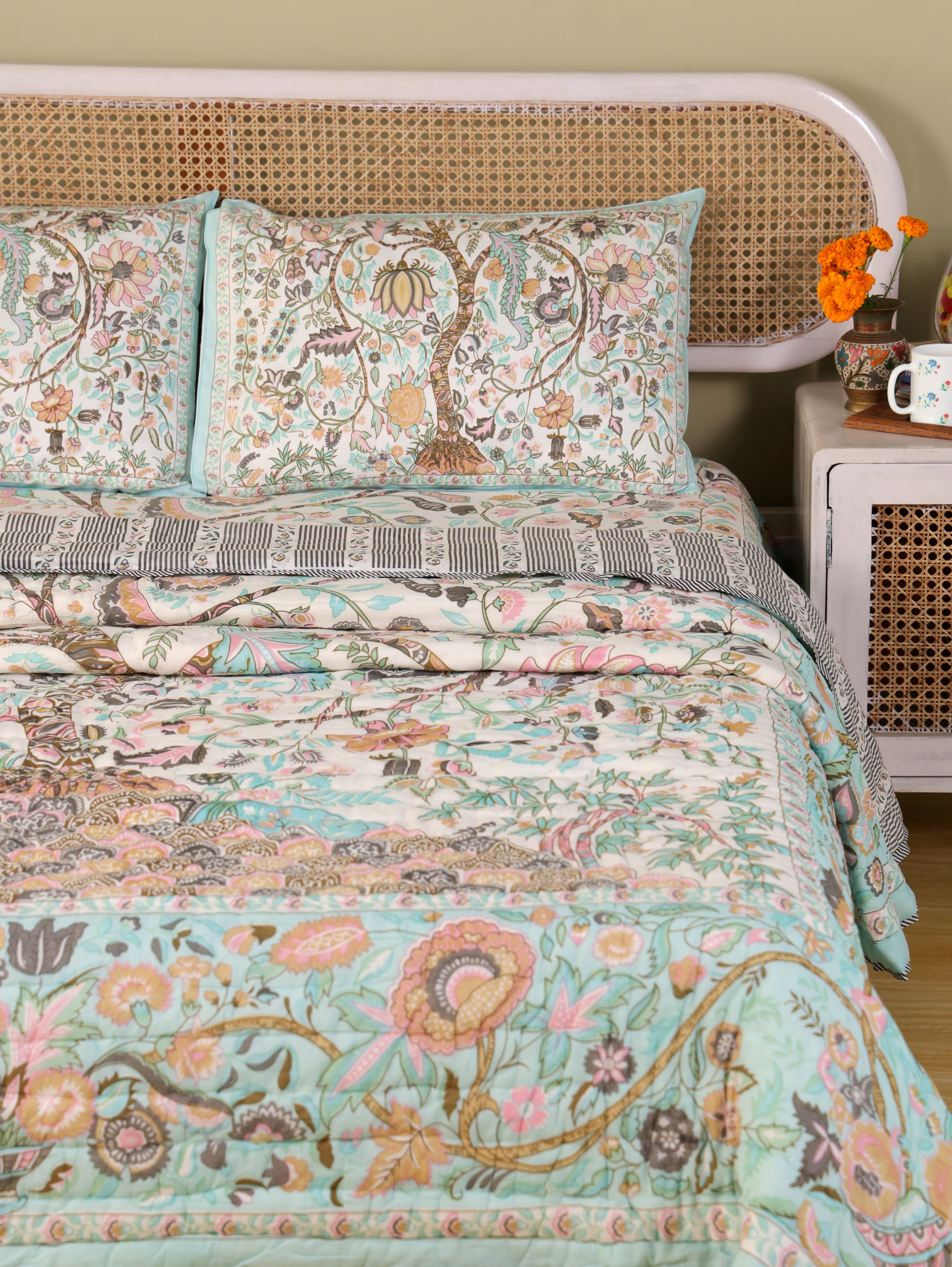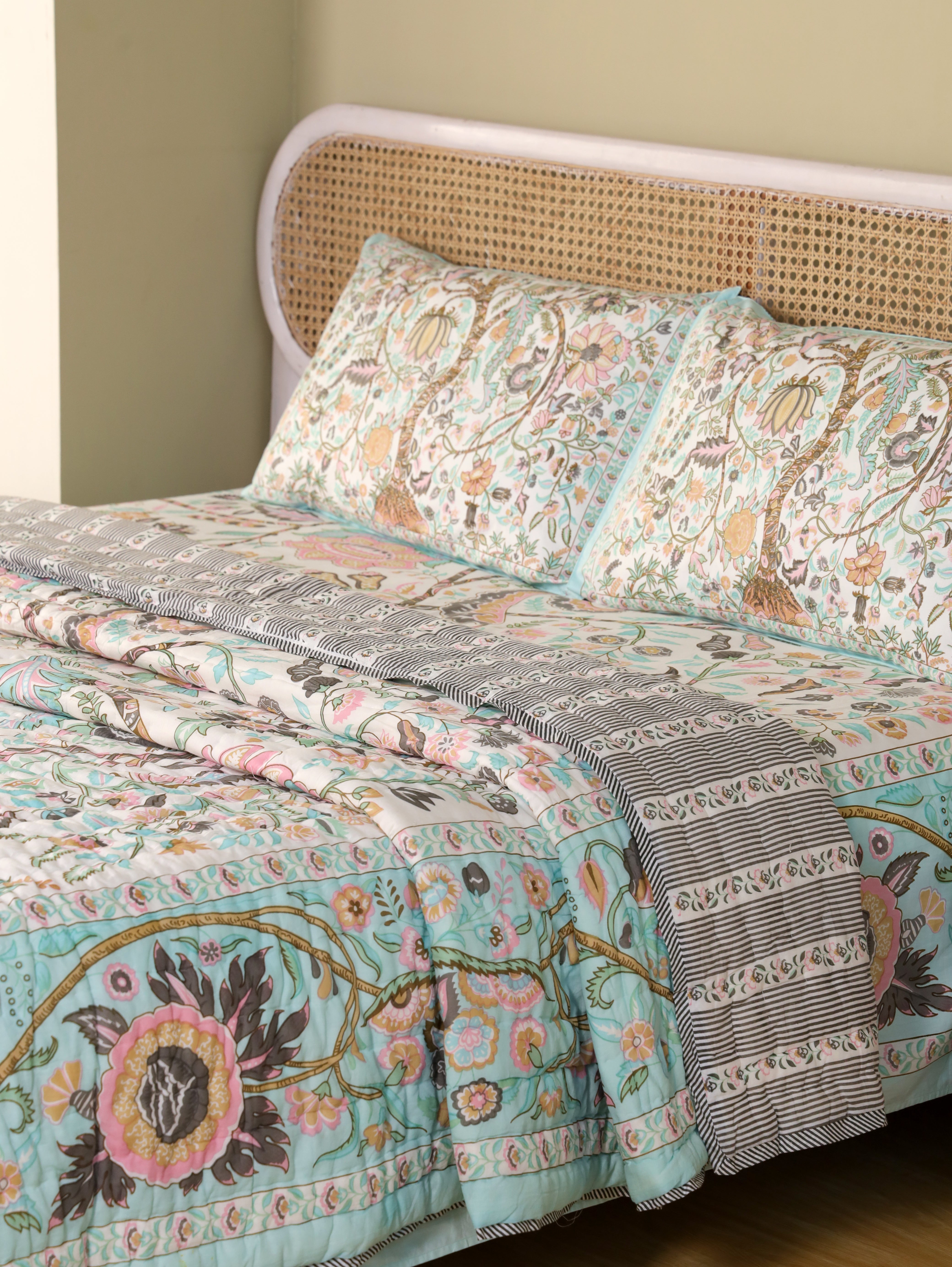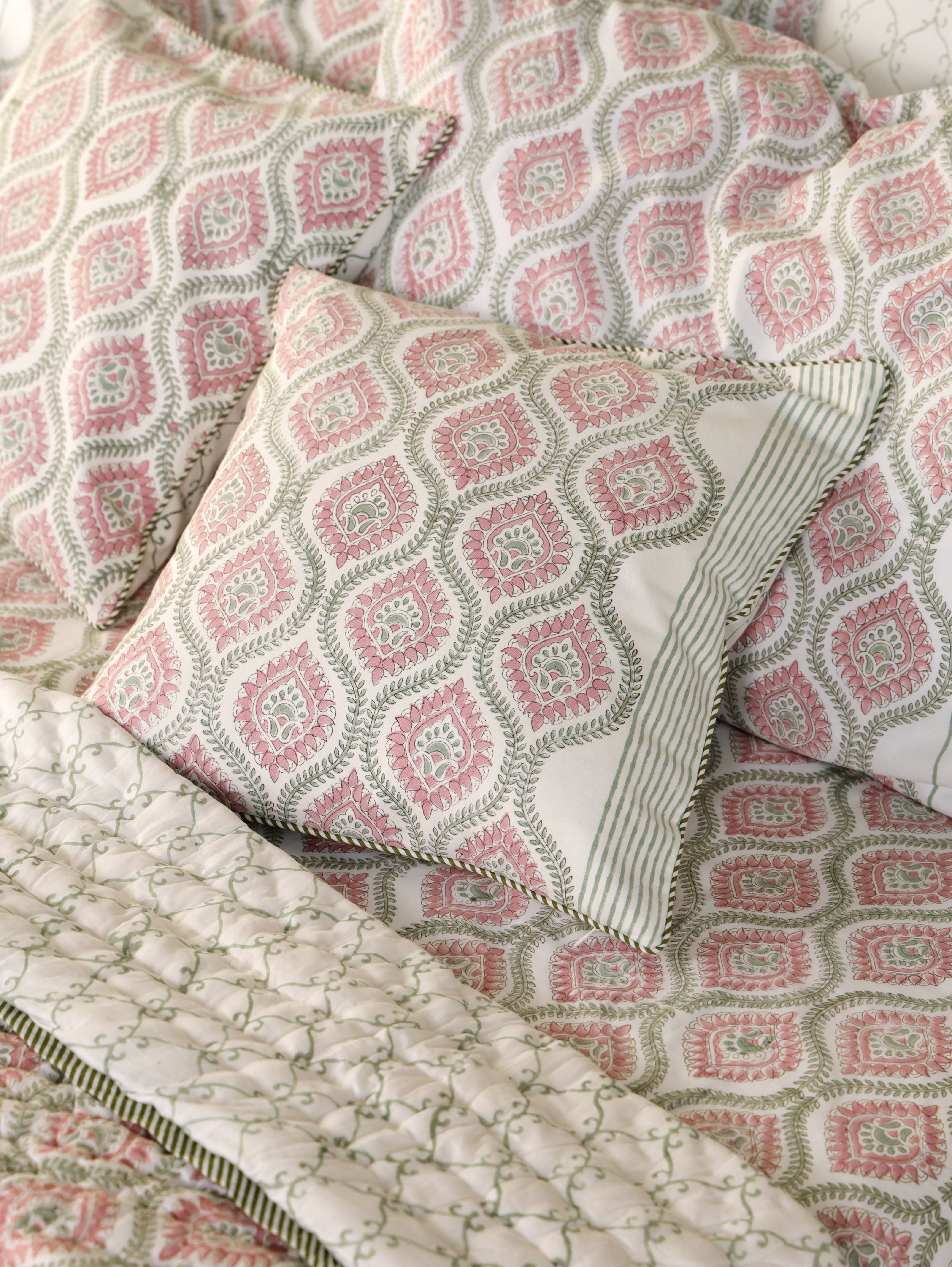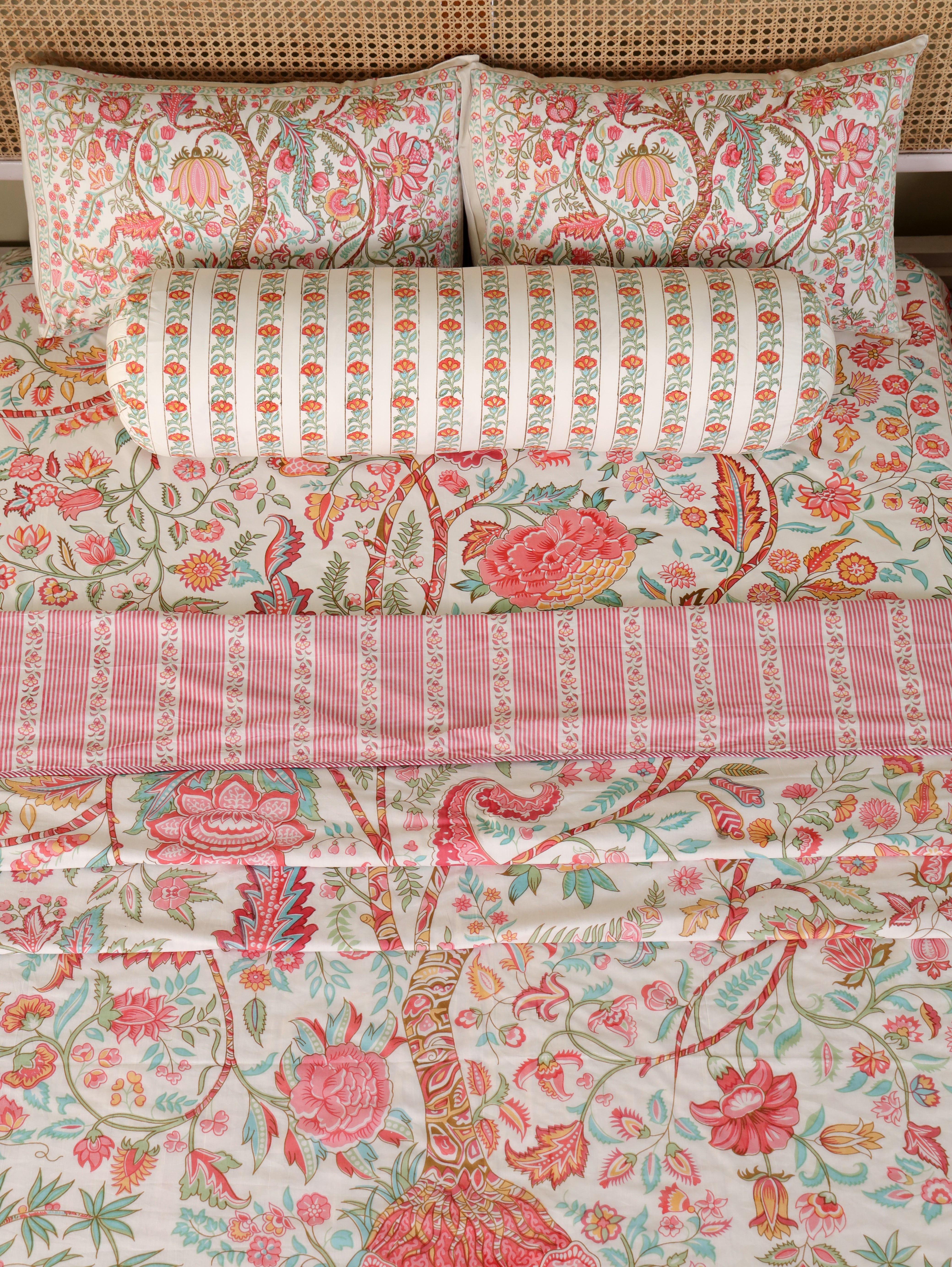 Handblock Printed Quilt, Bedsheet & Pillow Covers Set - Ellen Pale Pink