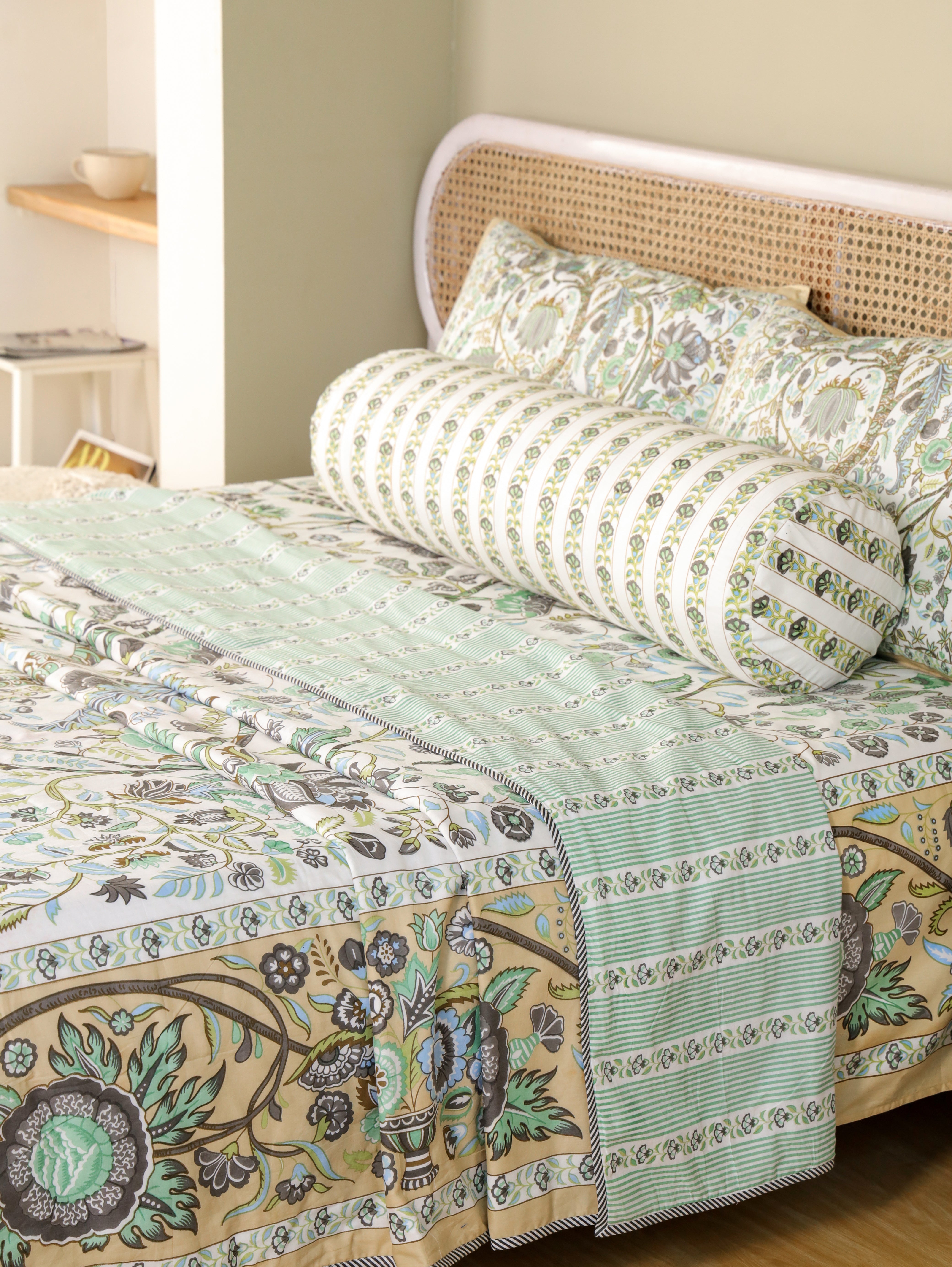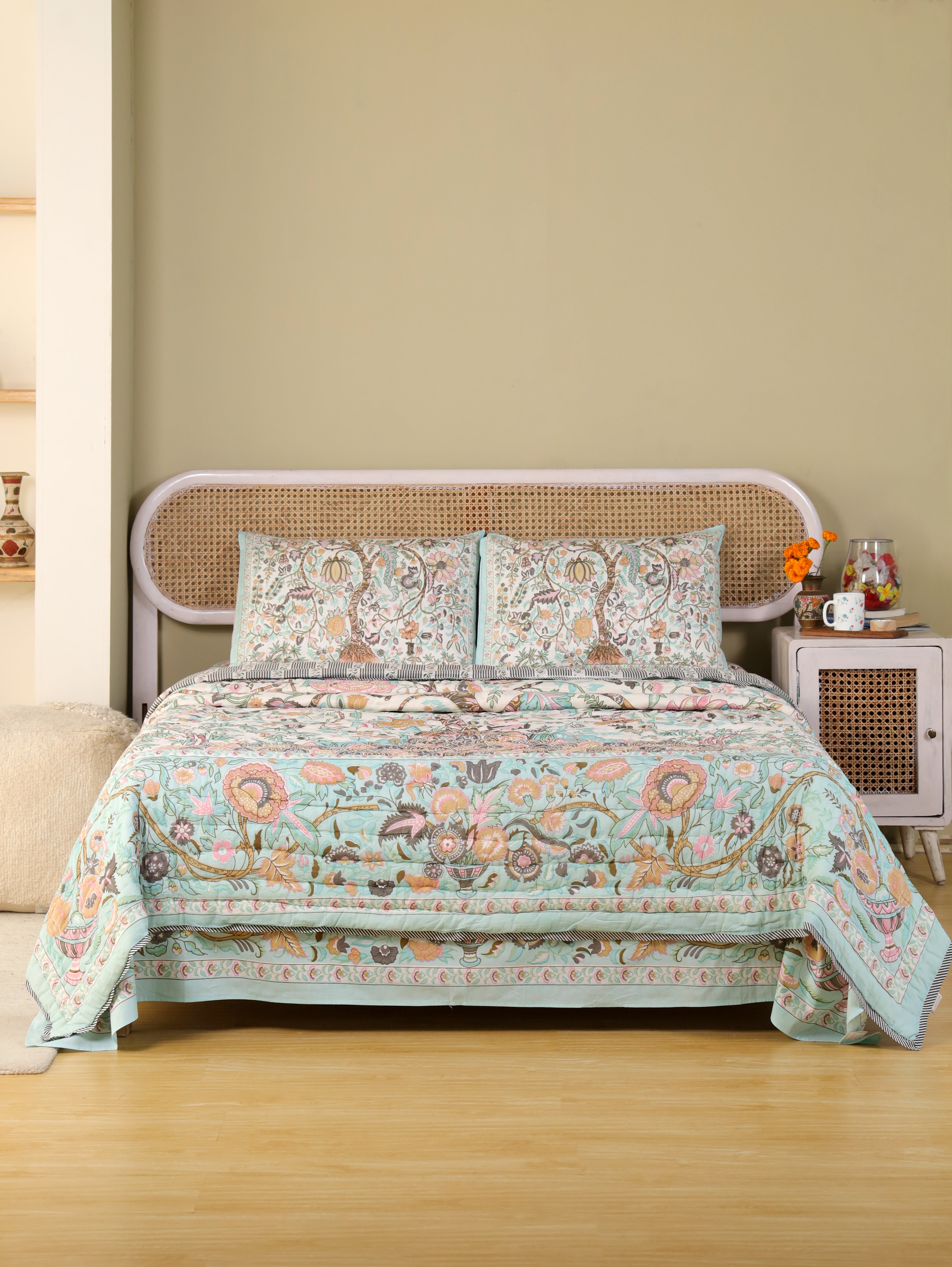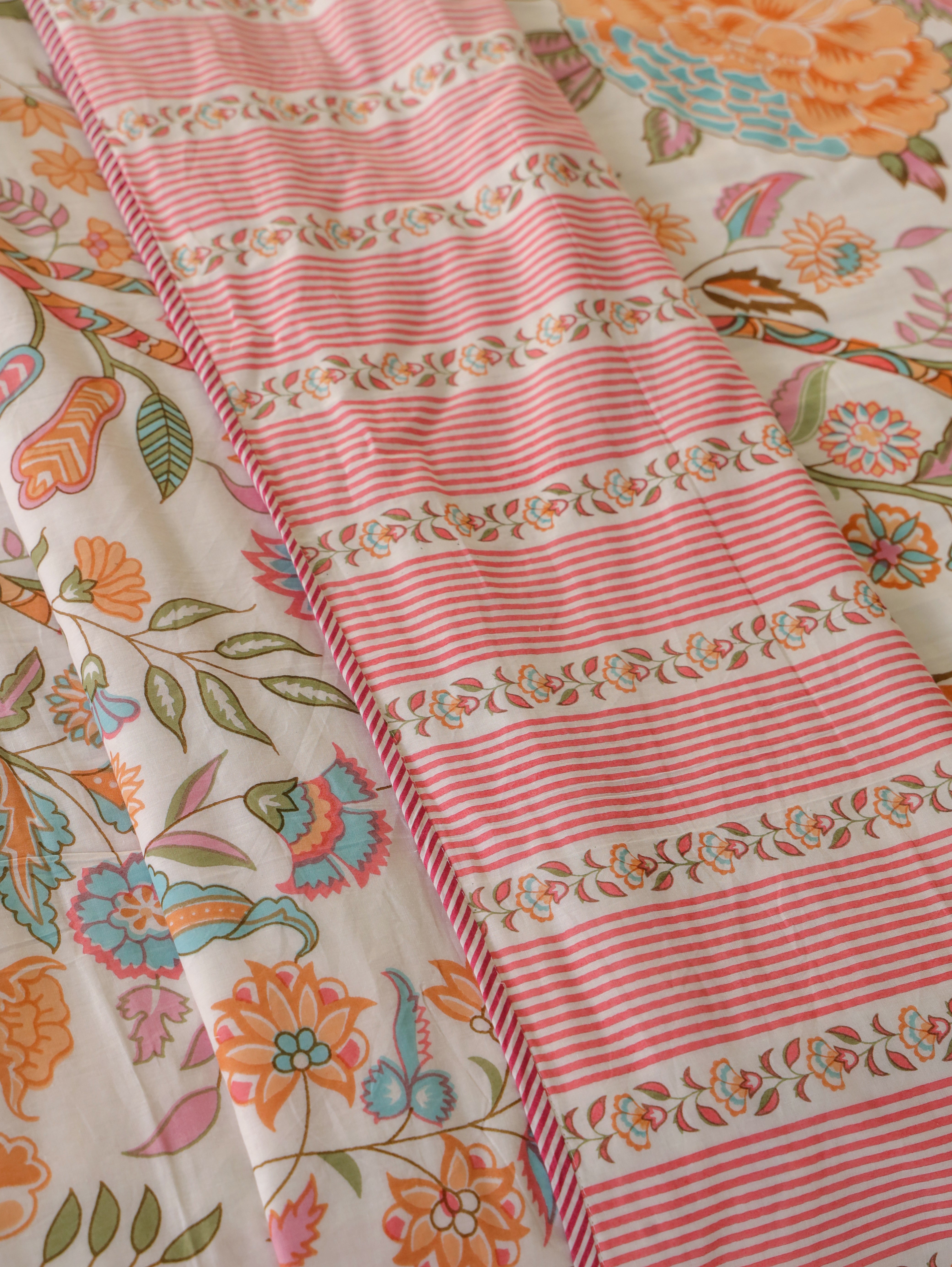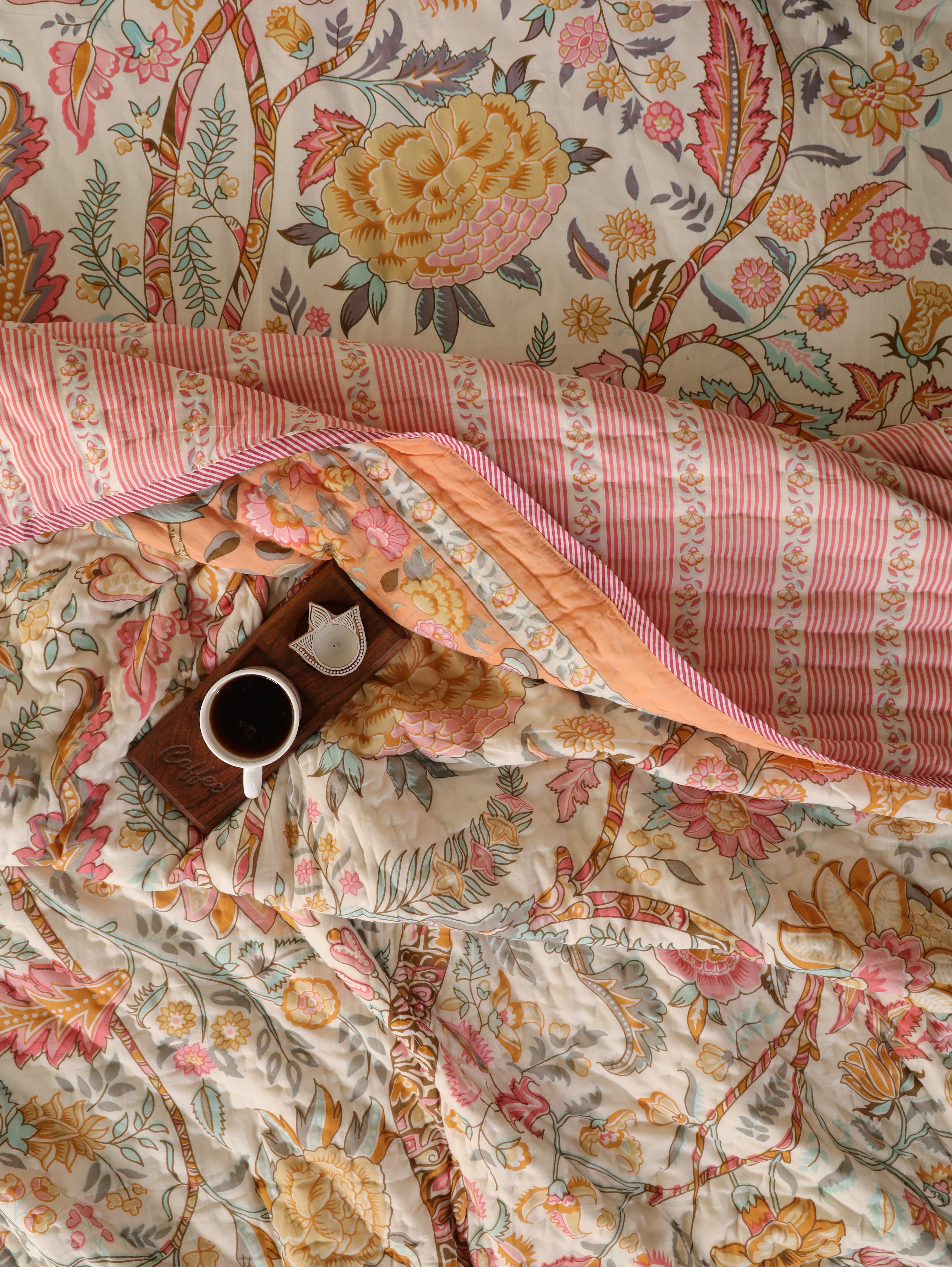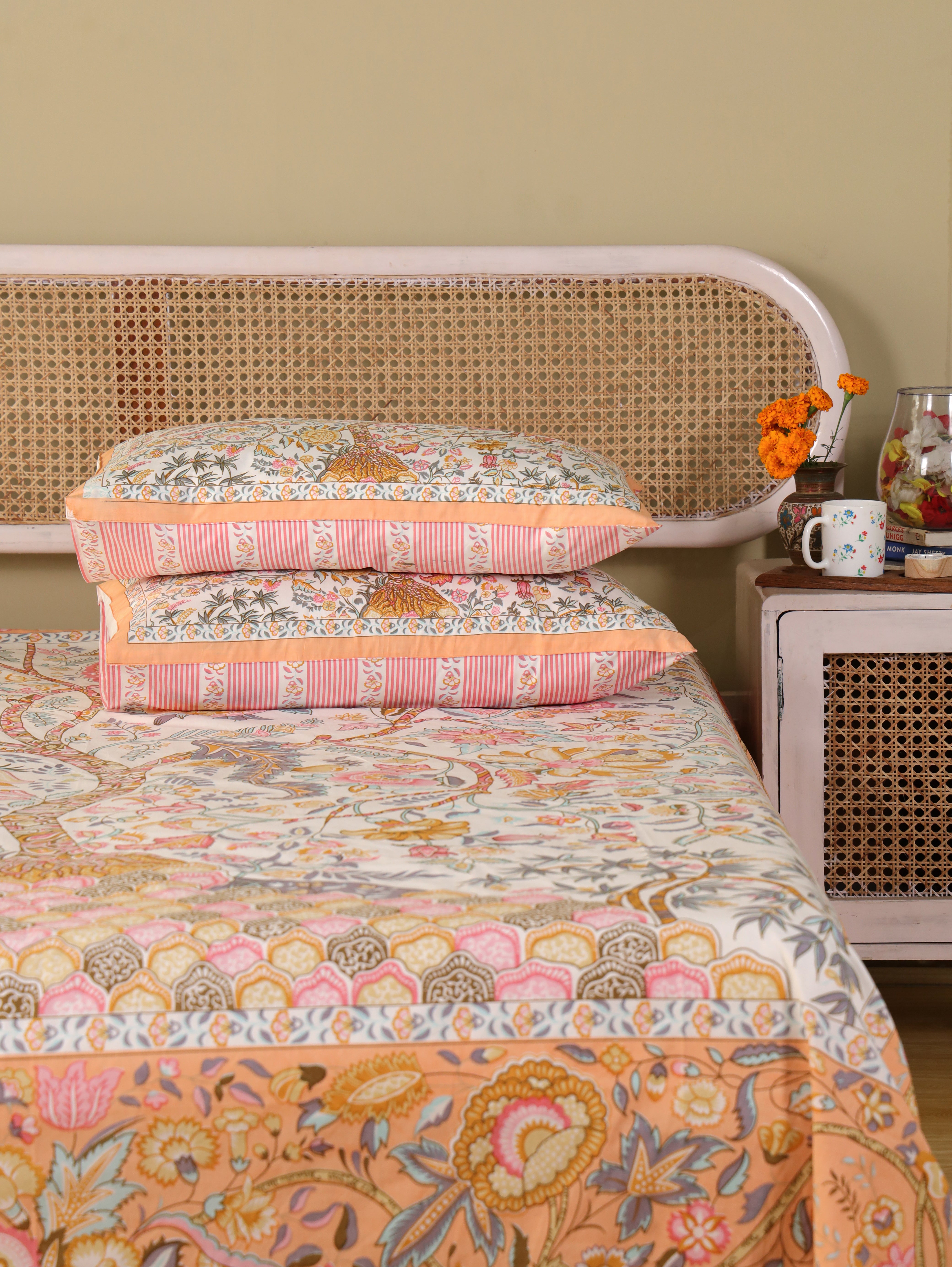 Handblock Printed Quilt, Bedsheet & Pillow Covers Set - Ellen Pale Pink