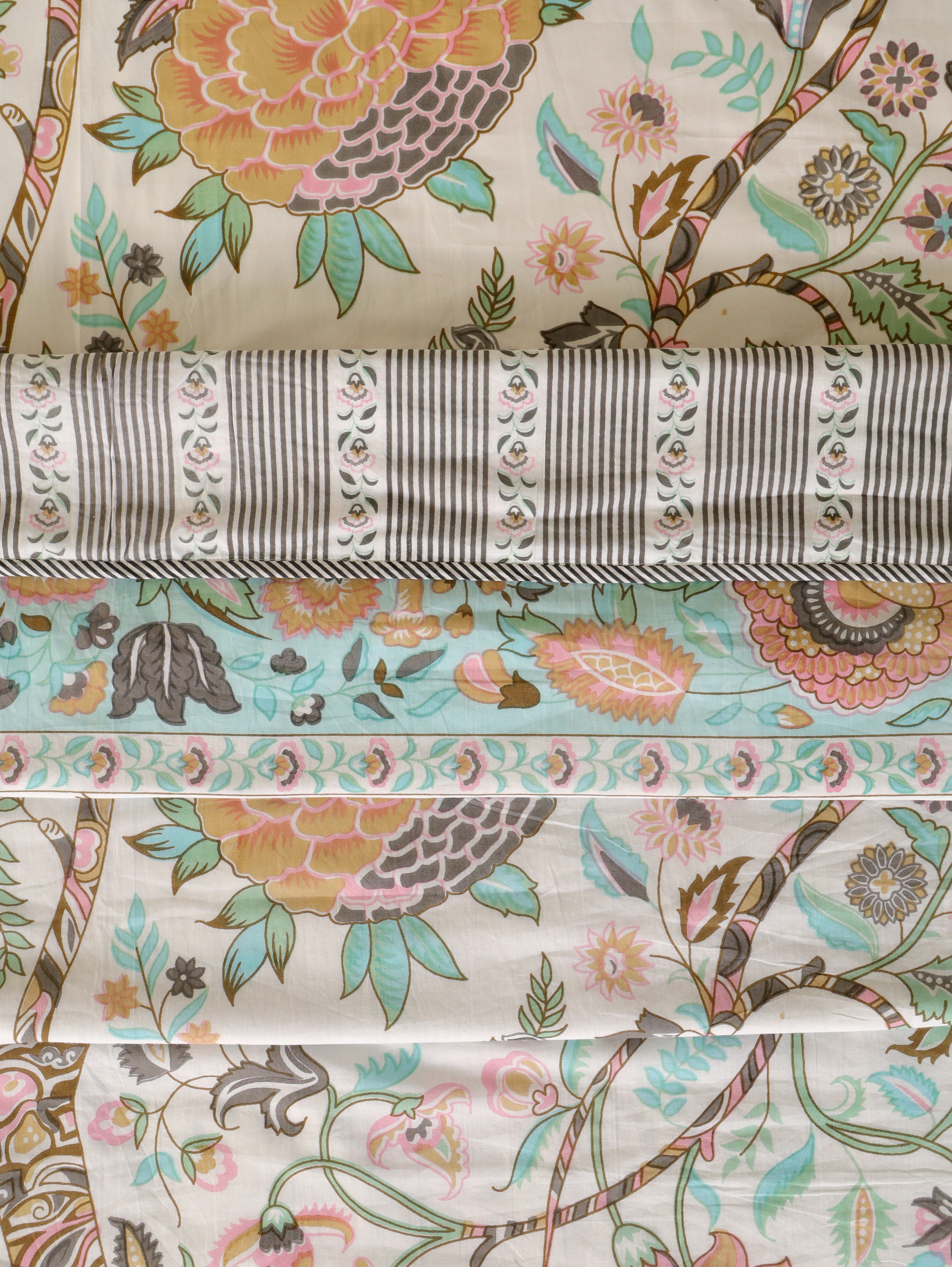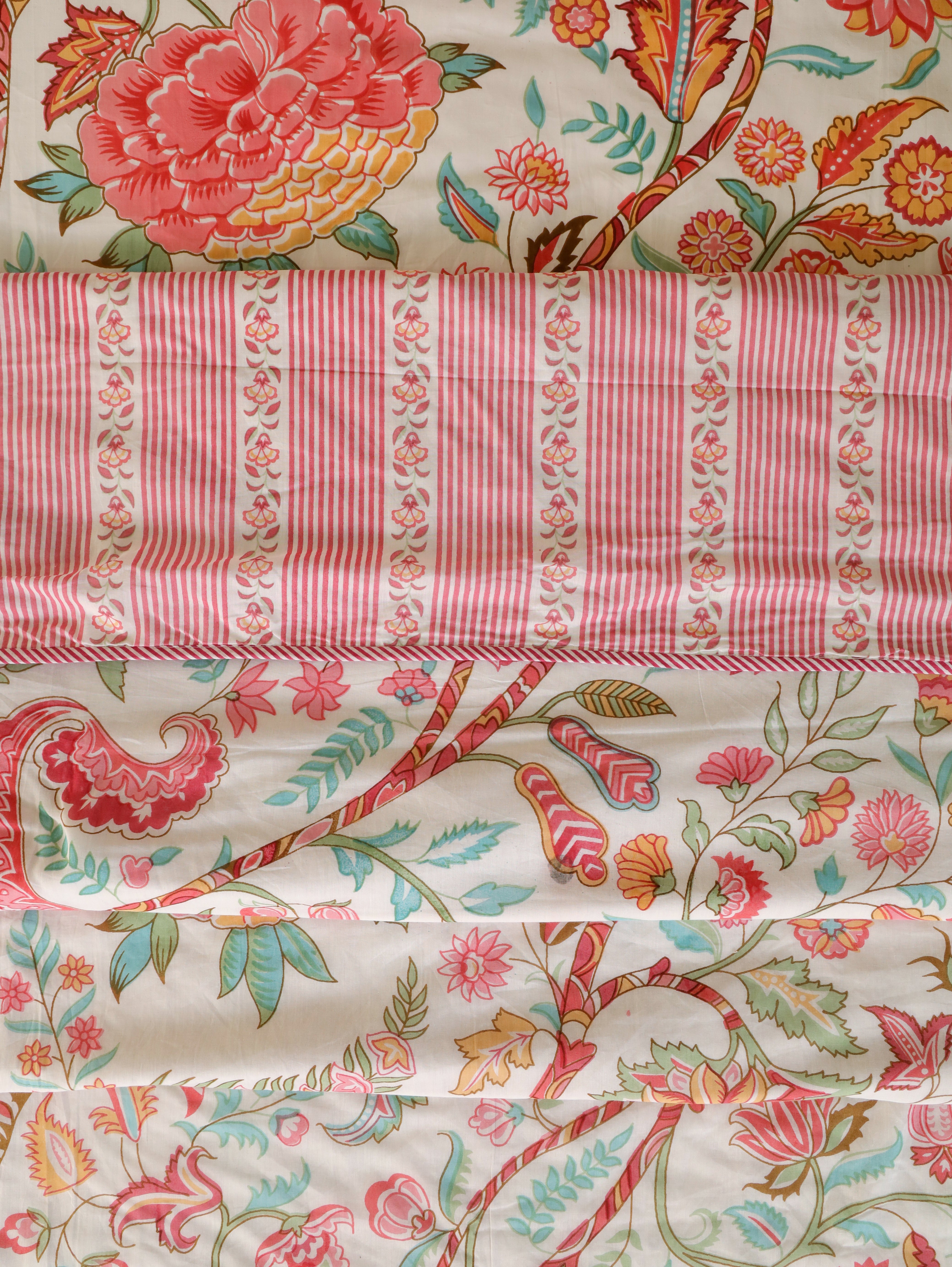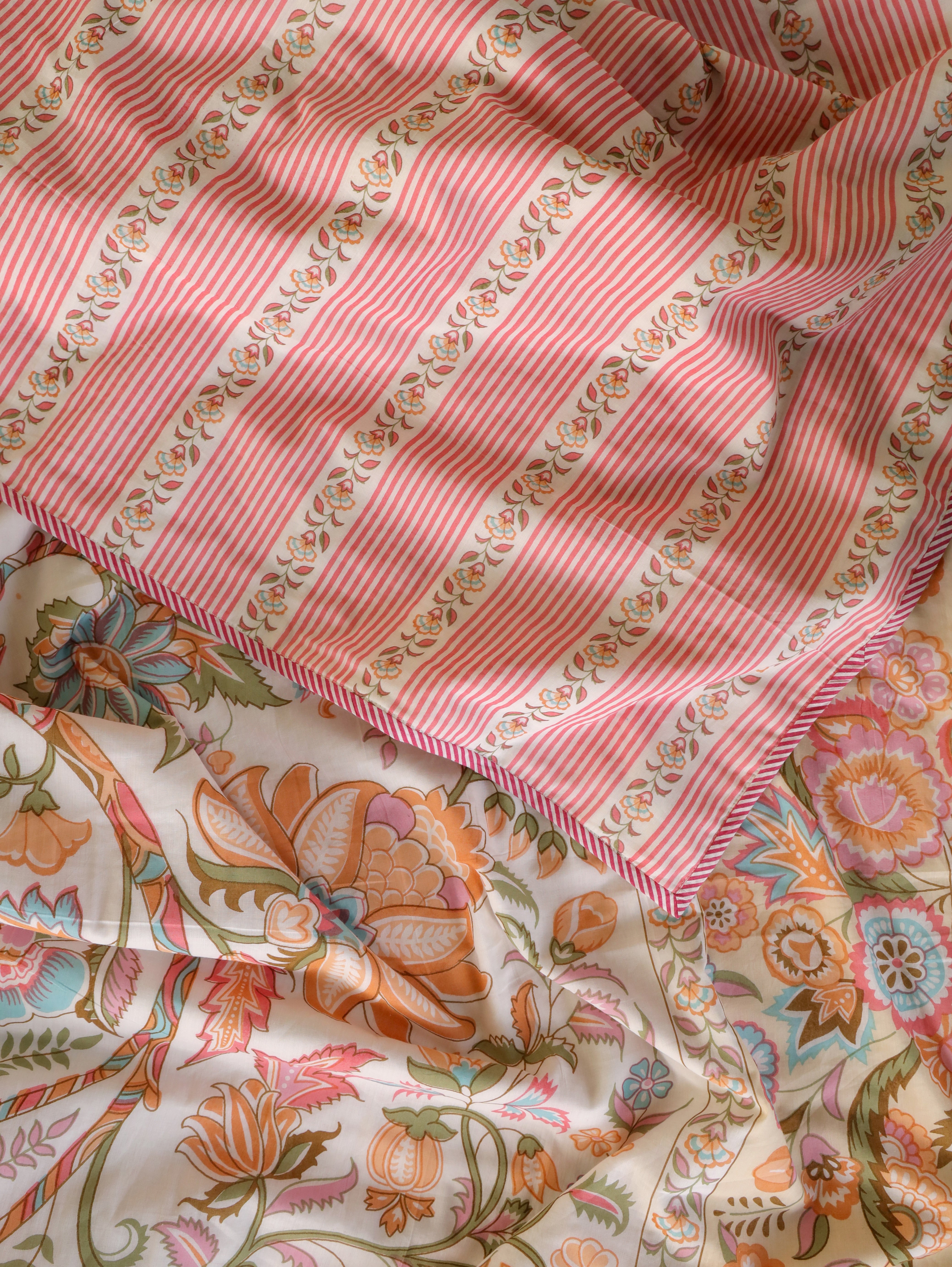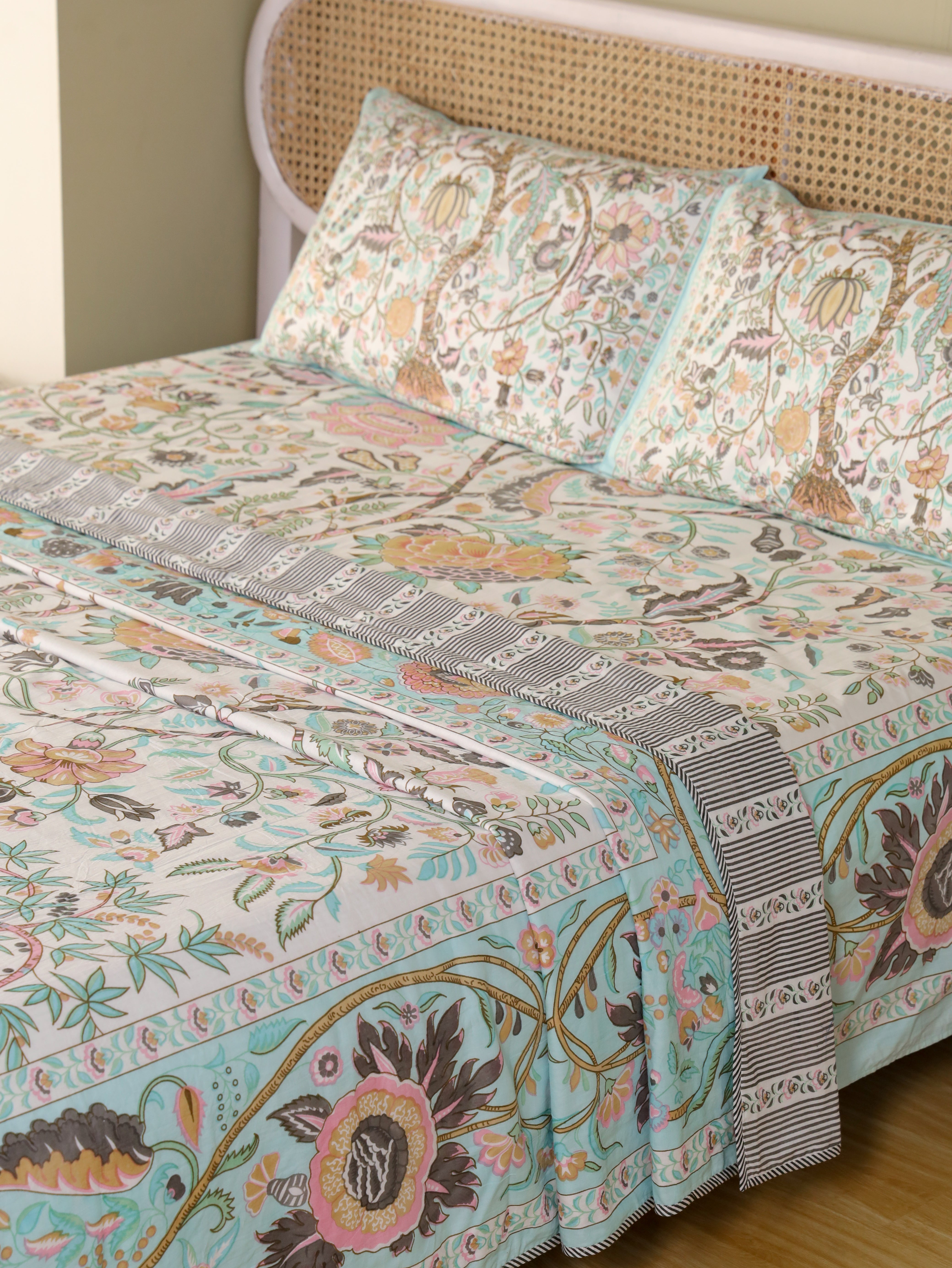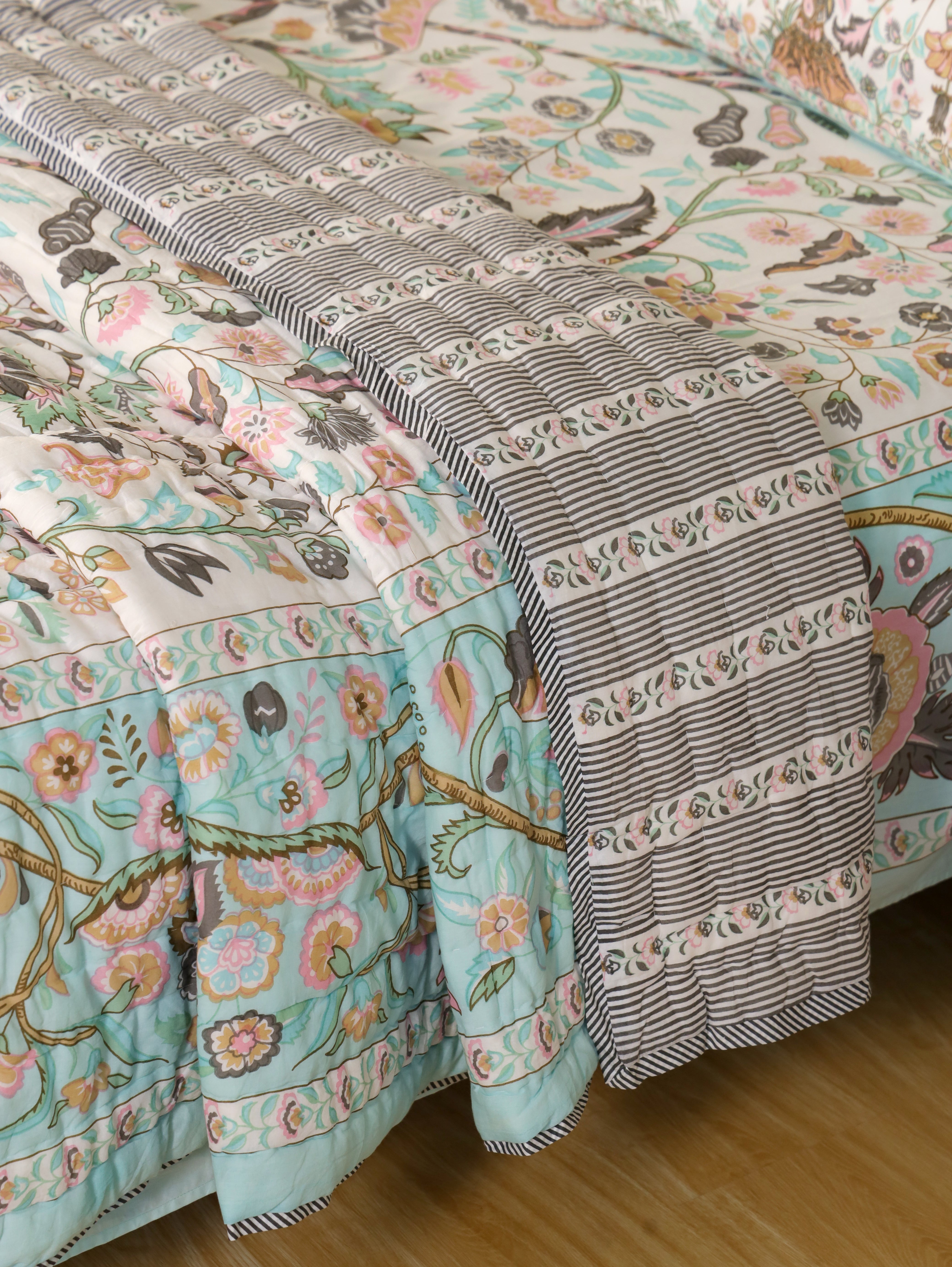 Handblock Printed Quilt, Bedsheet & Pillow Covers Set - Ellen Pale Pink