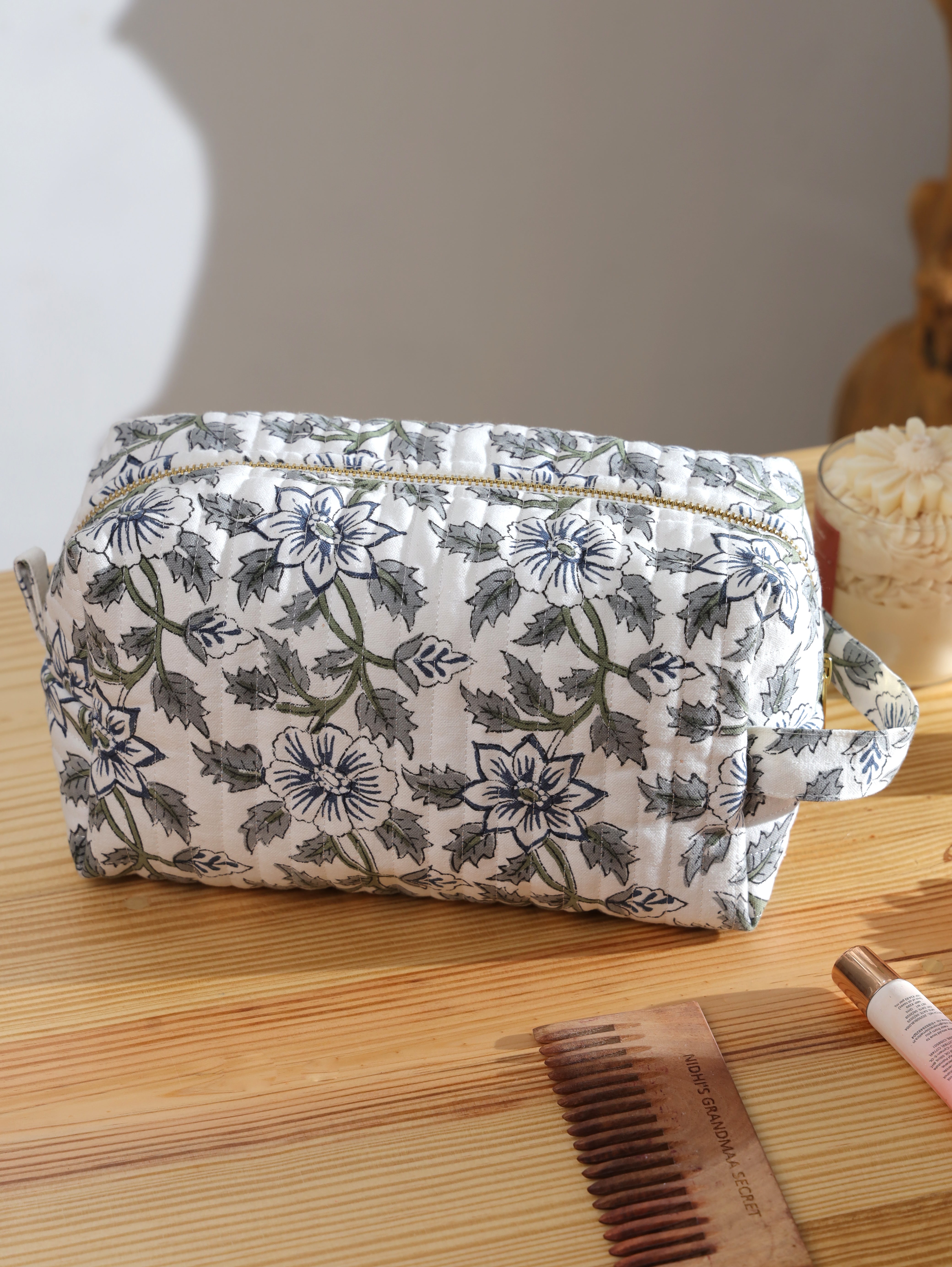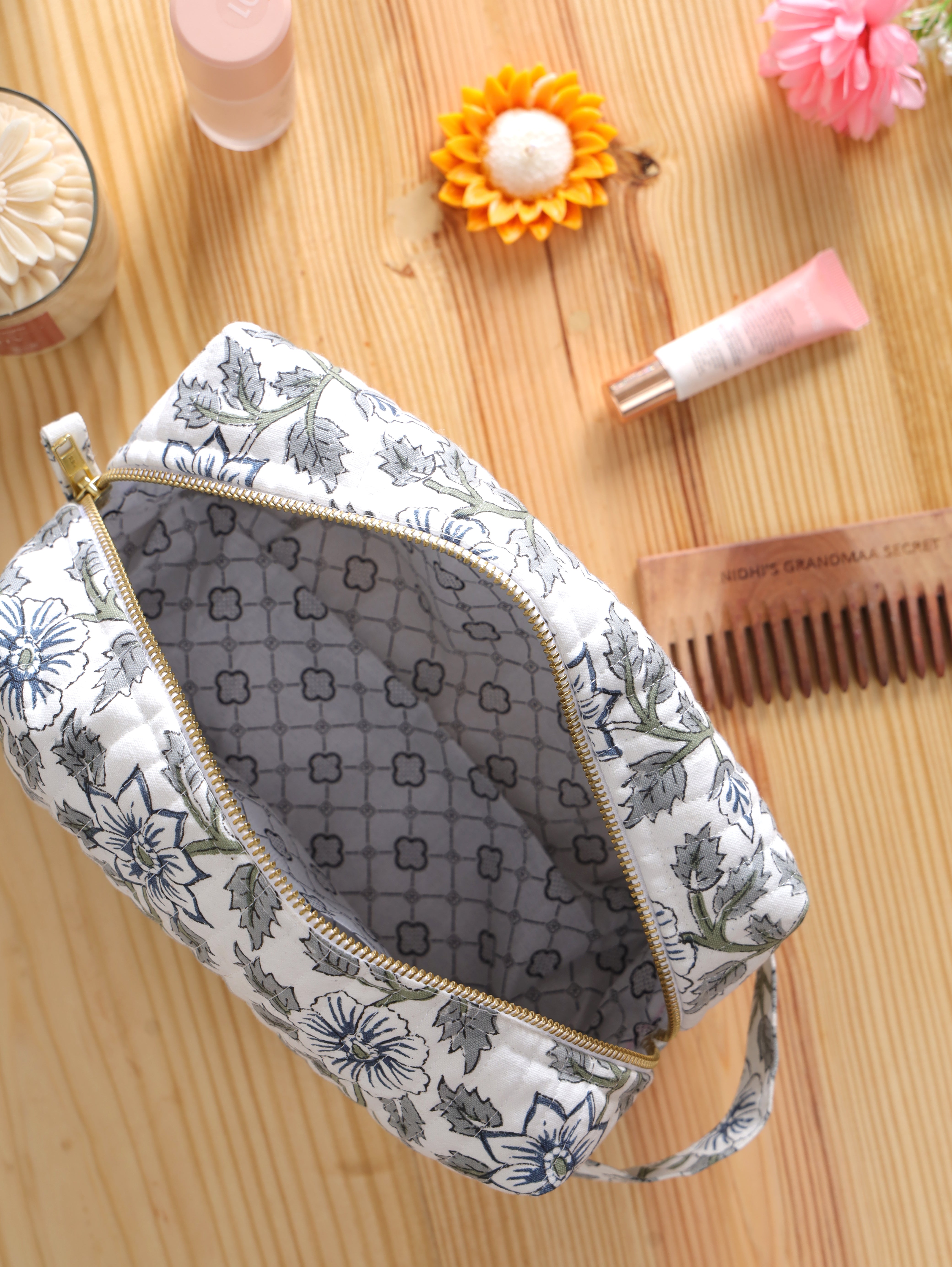 Handblock Printed Make-up Bag - Porto