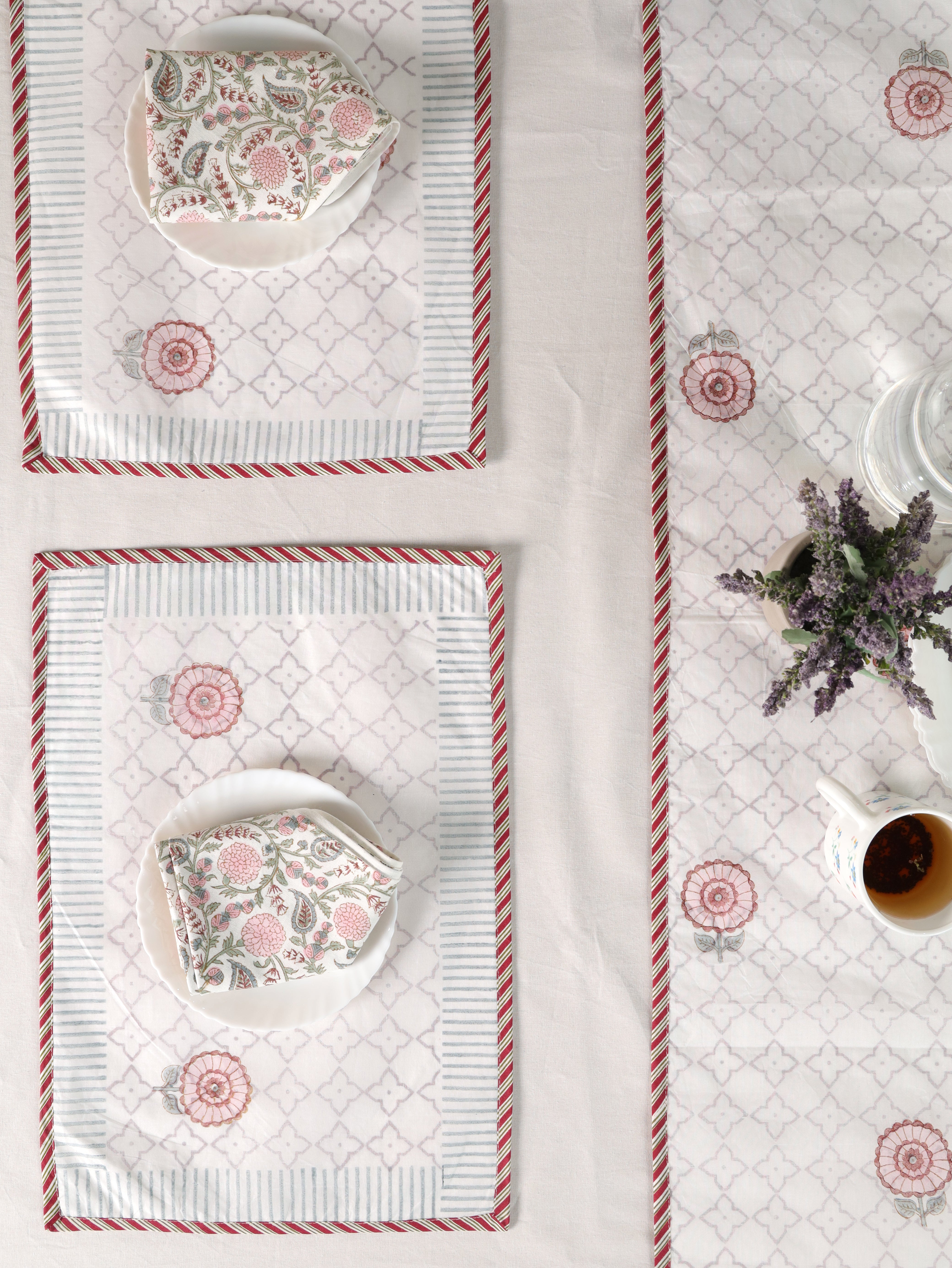 Hand-block printed table linen collection