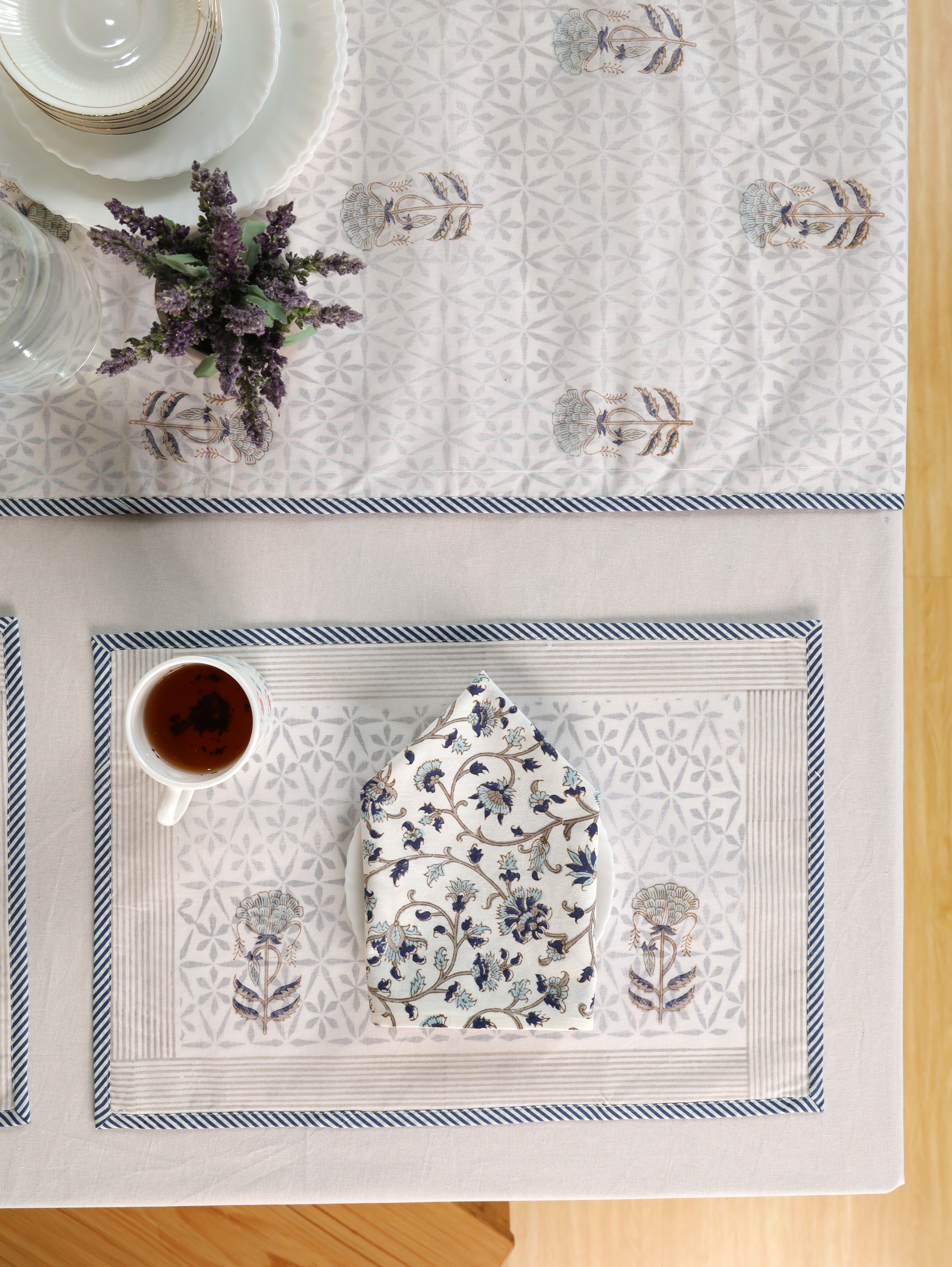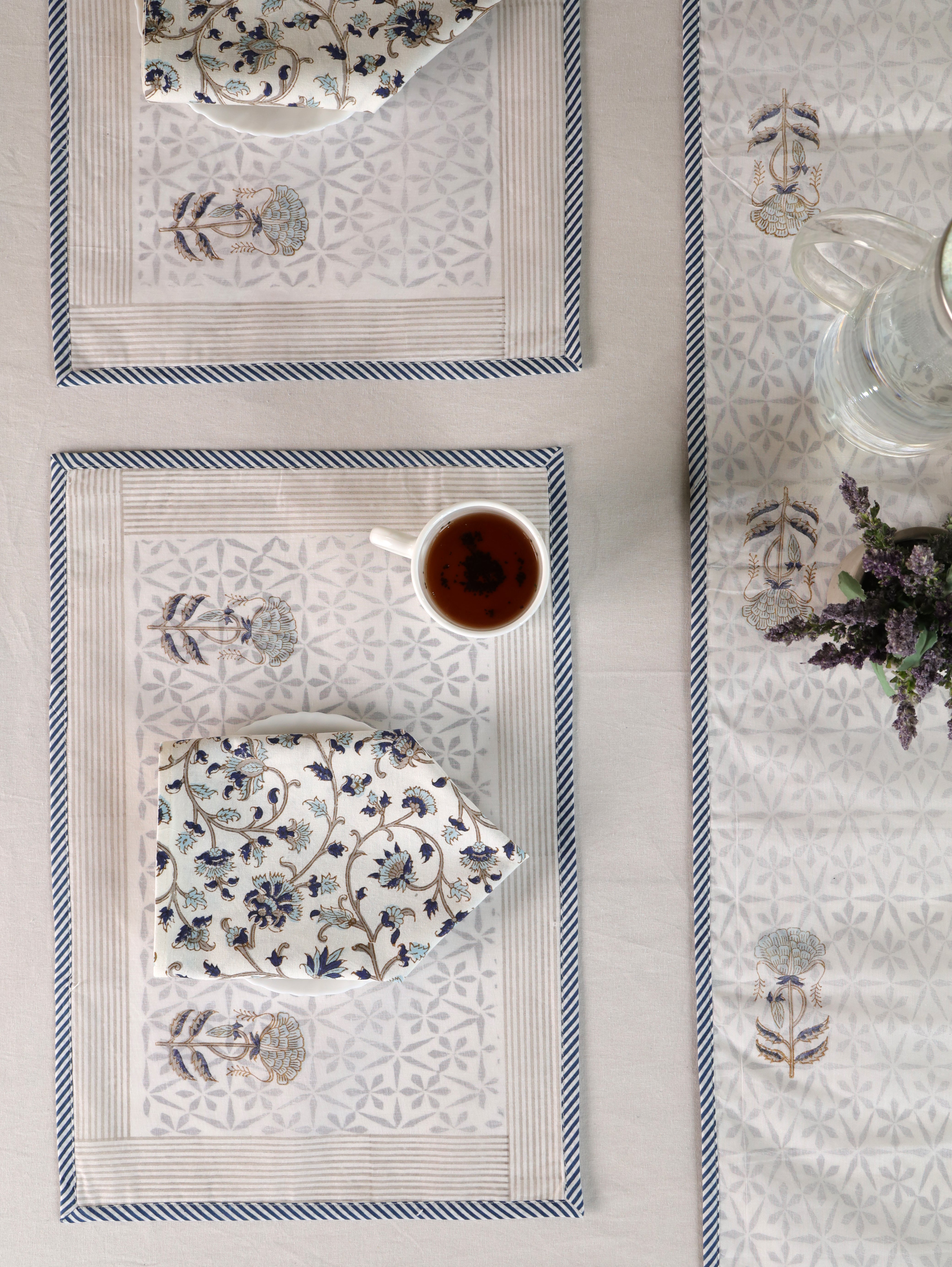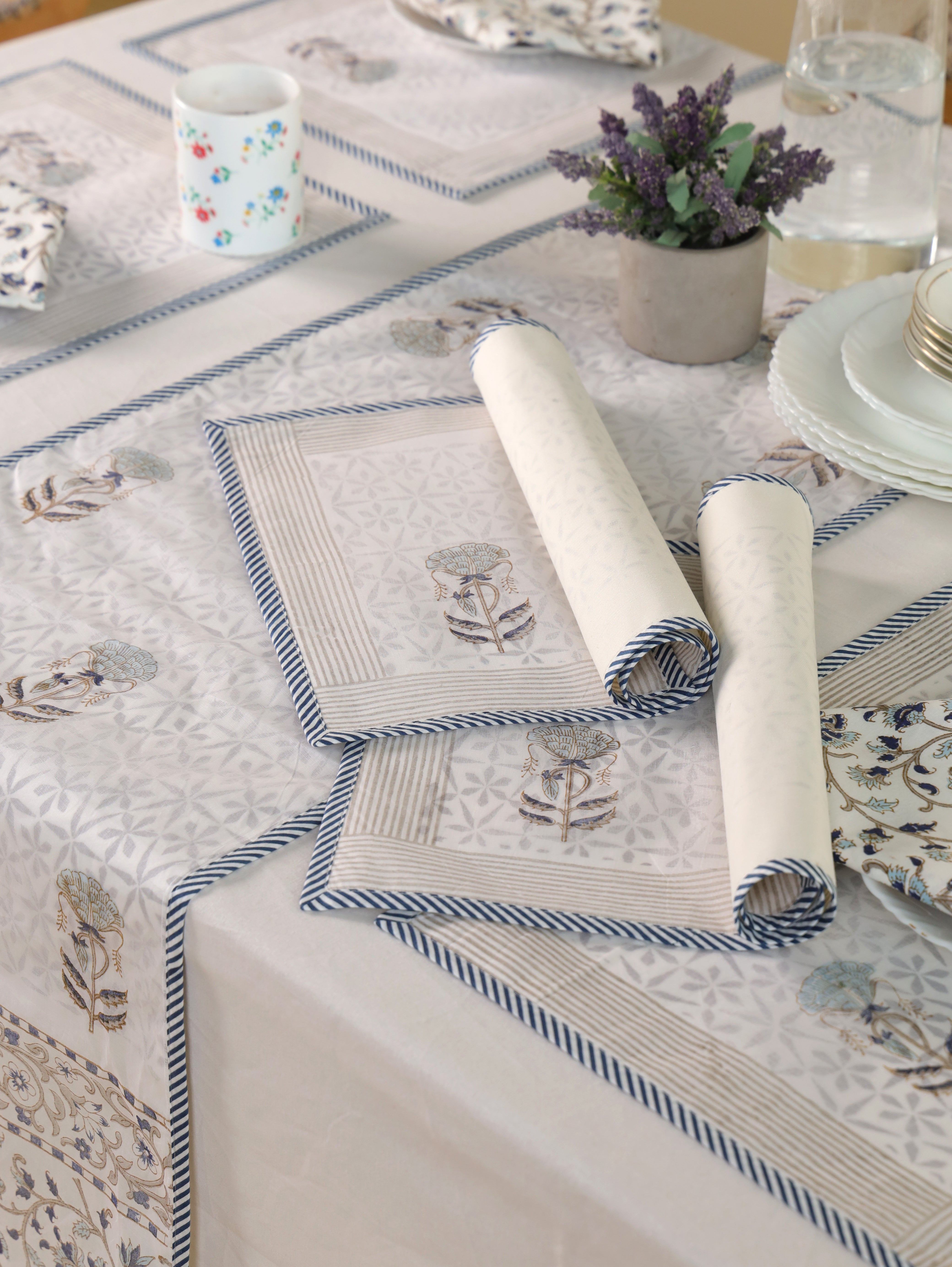 Hand-block printed table linen collection