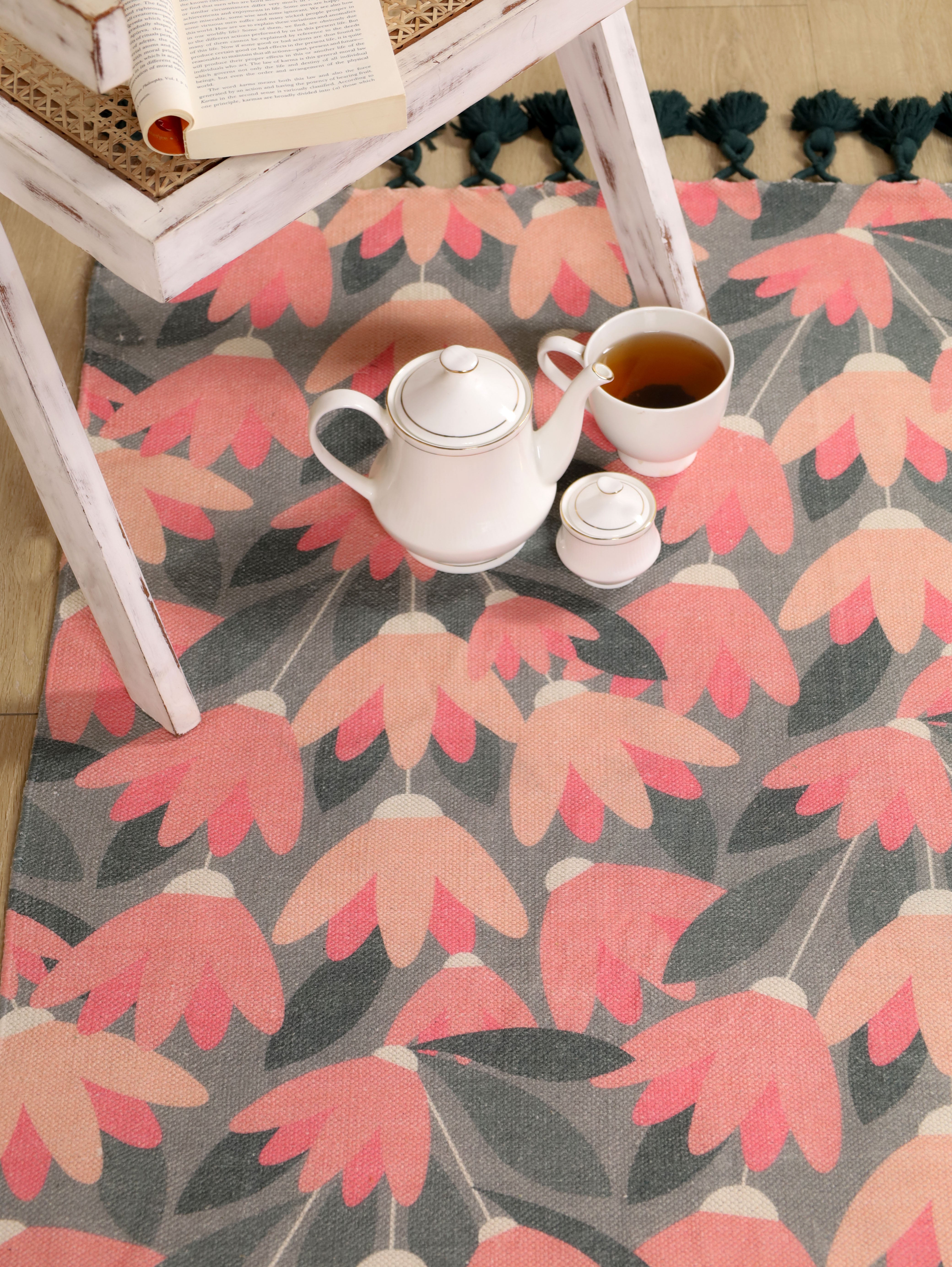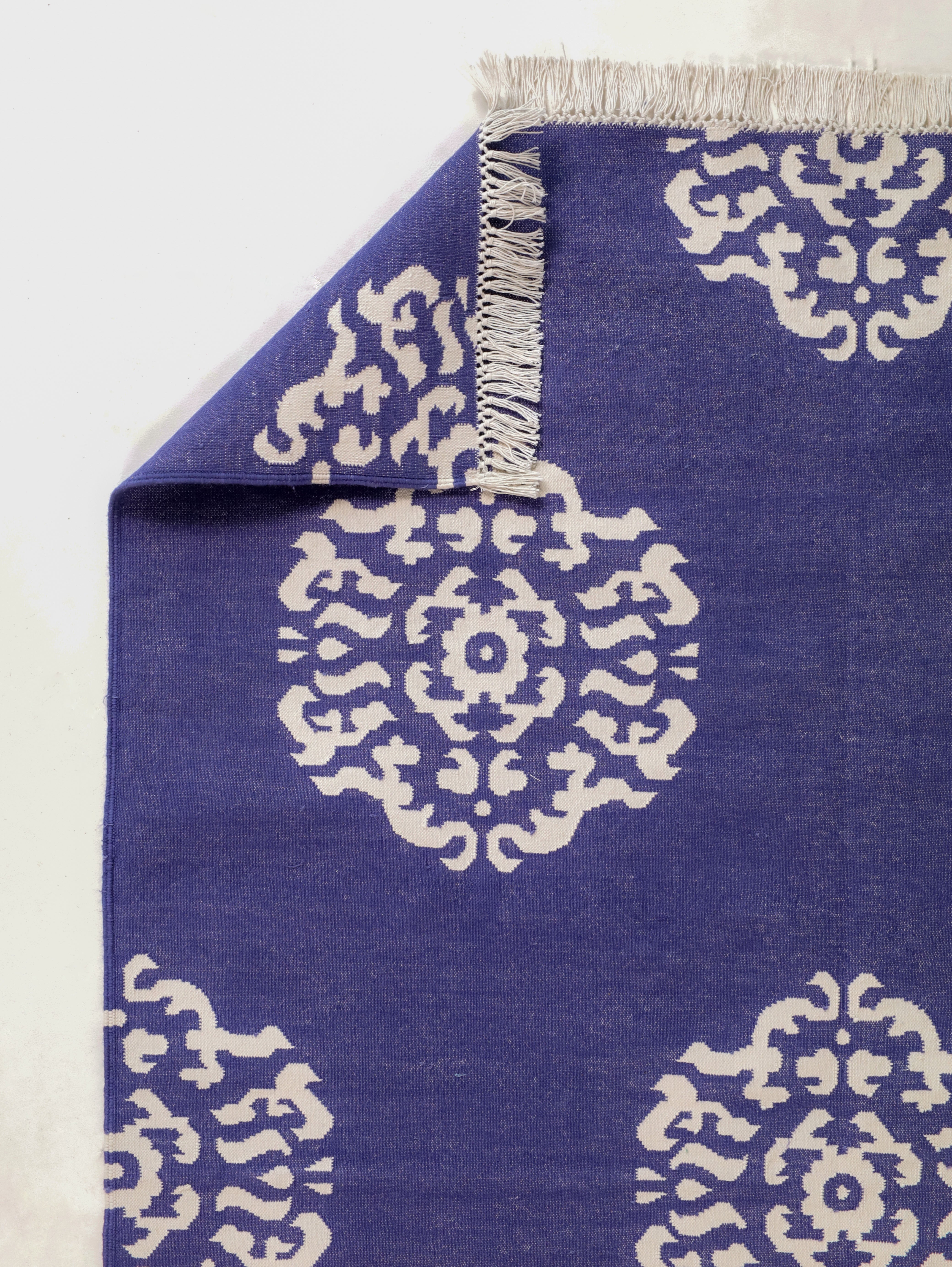 This compact woven cotton Dhurrie rug is a beautiful addition to any home decor. Made from high-quality cotton, it boasts a stunning woven pattern that adds an element of sophistication and style to any room. The intricate design features a mix of geometric shapes and bold colours, creating a visually appealing unique piece. Perfect for adding a touch of texture to your space.