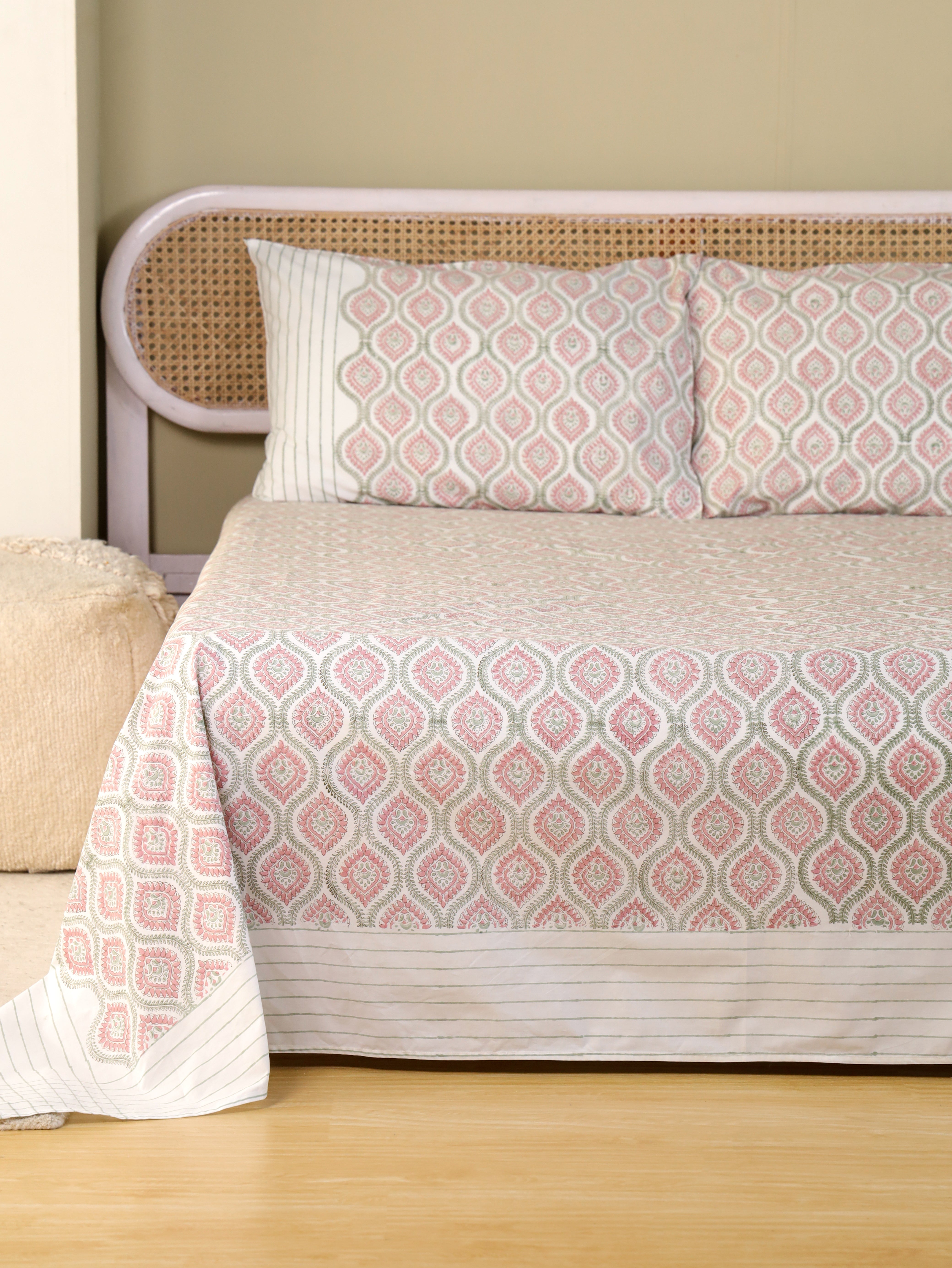 Handblock Printed Bedsheet & Pillow Covers Set - Alba