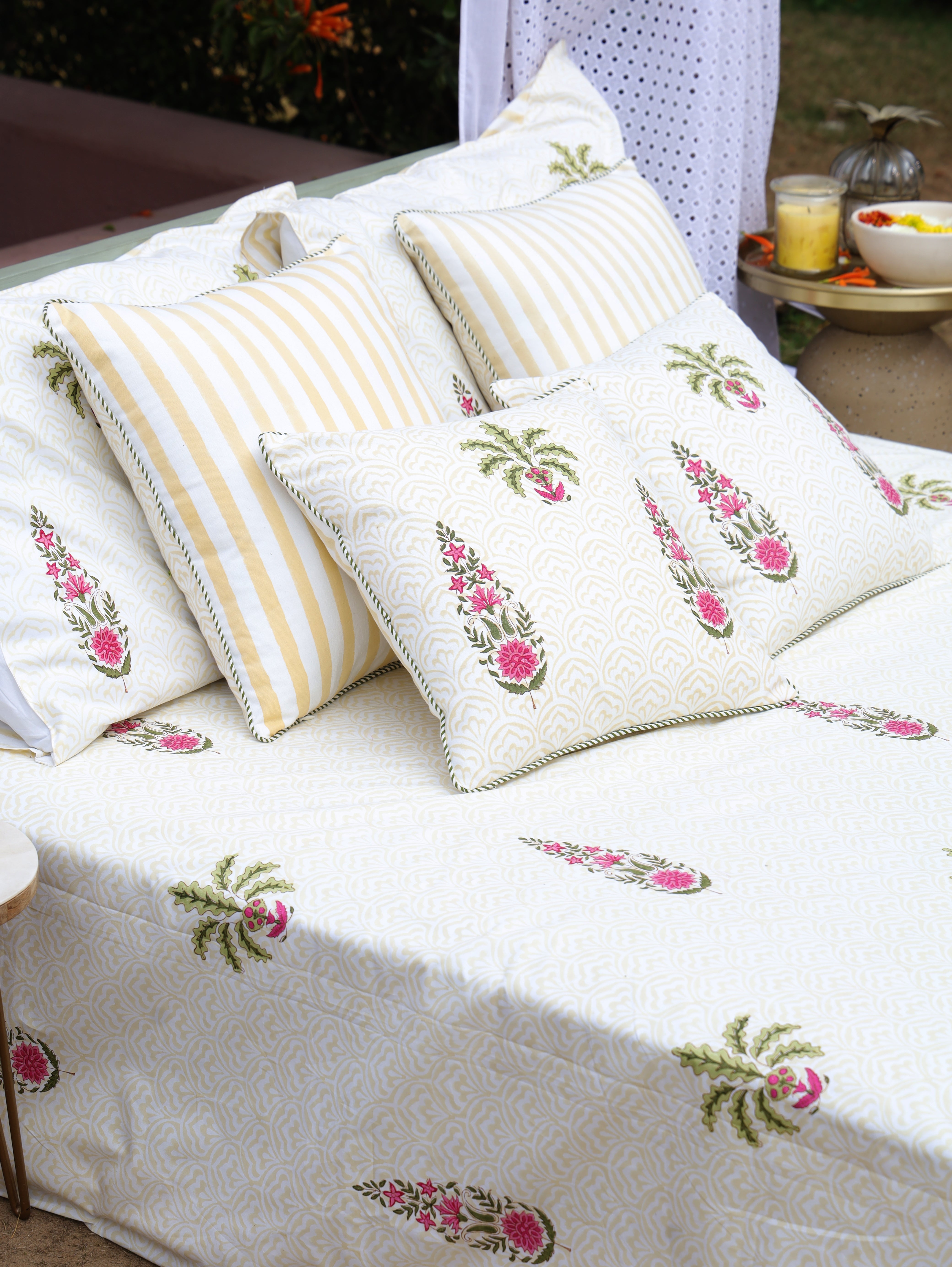• Bedsheet + 2 Pillow covers + 1 Bolster cover