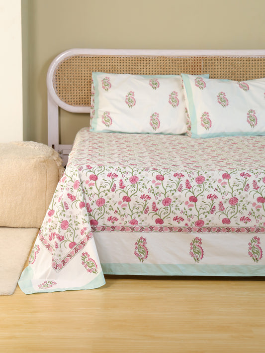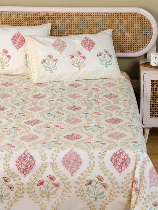 Handblock Printed Bedsheet & Pillow Covers Set - Faaye