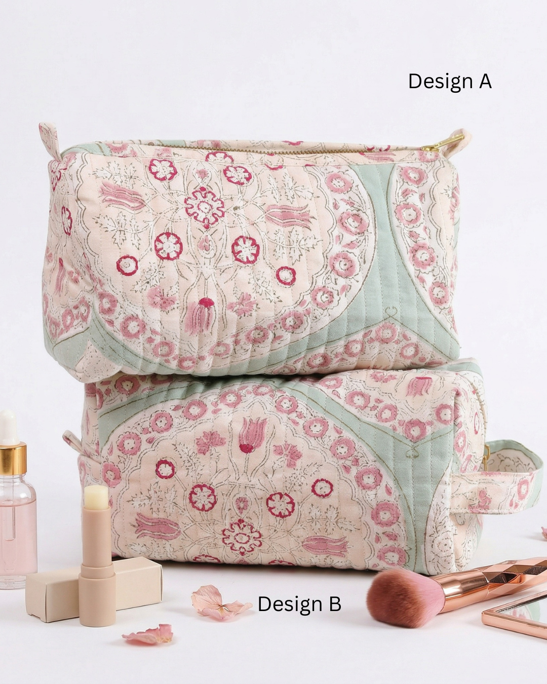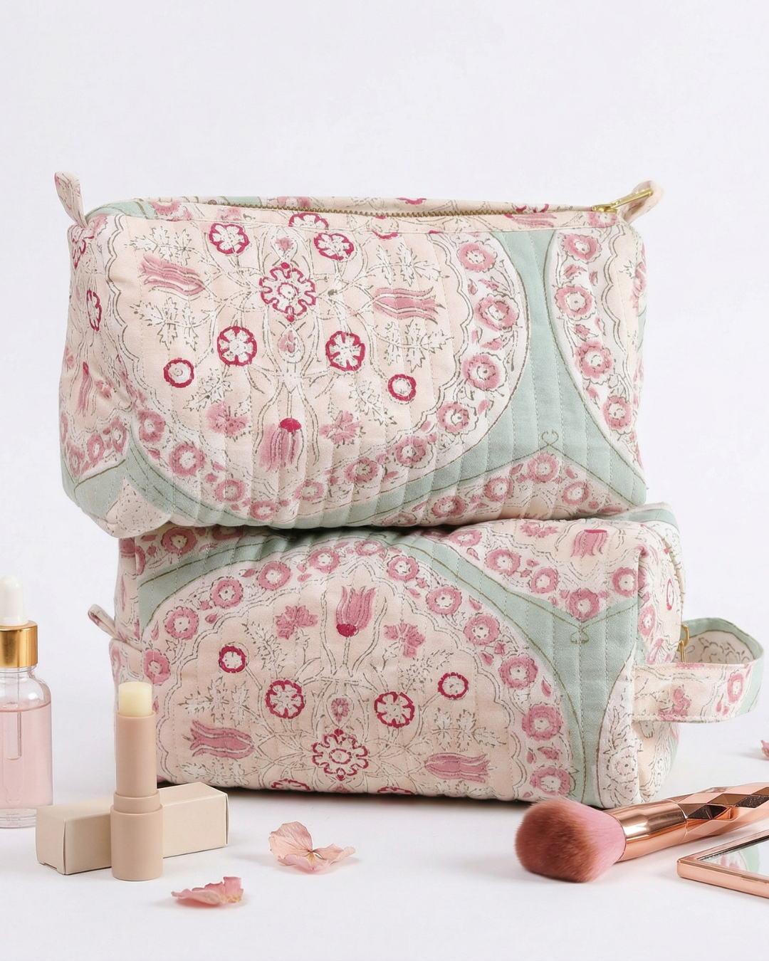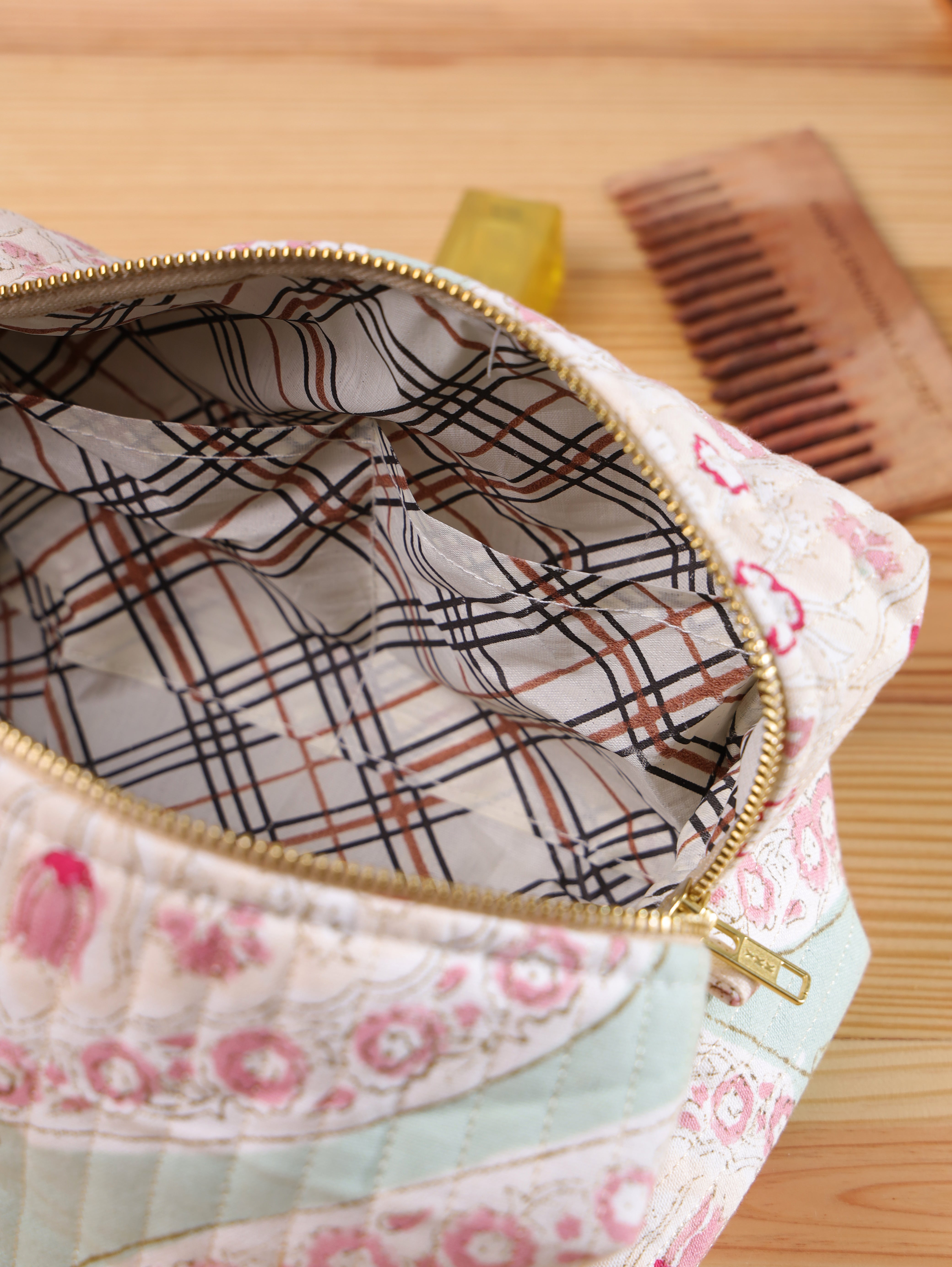 Handblock Printed Make-up Bag - Blossom