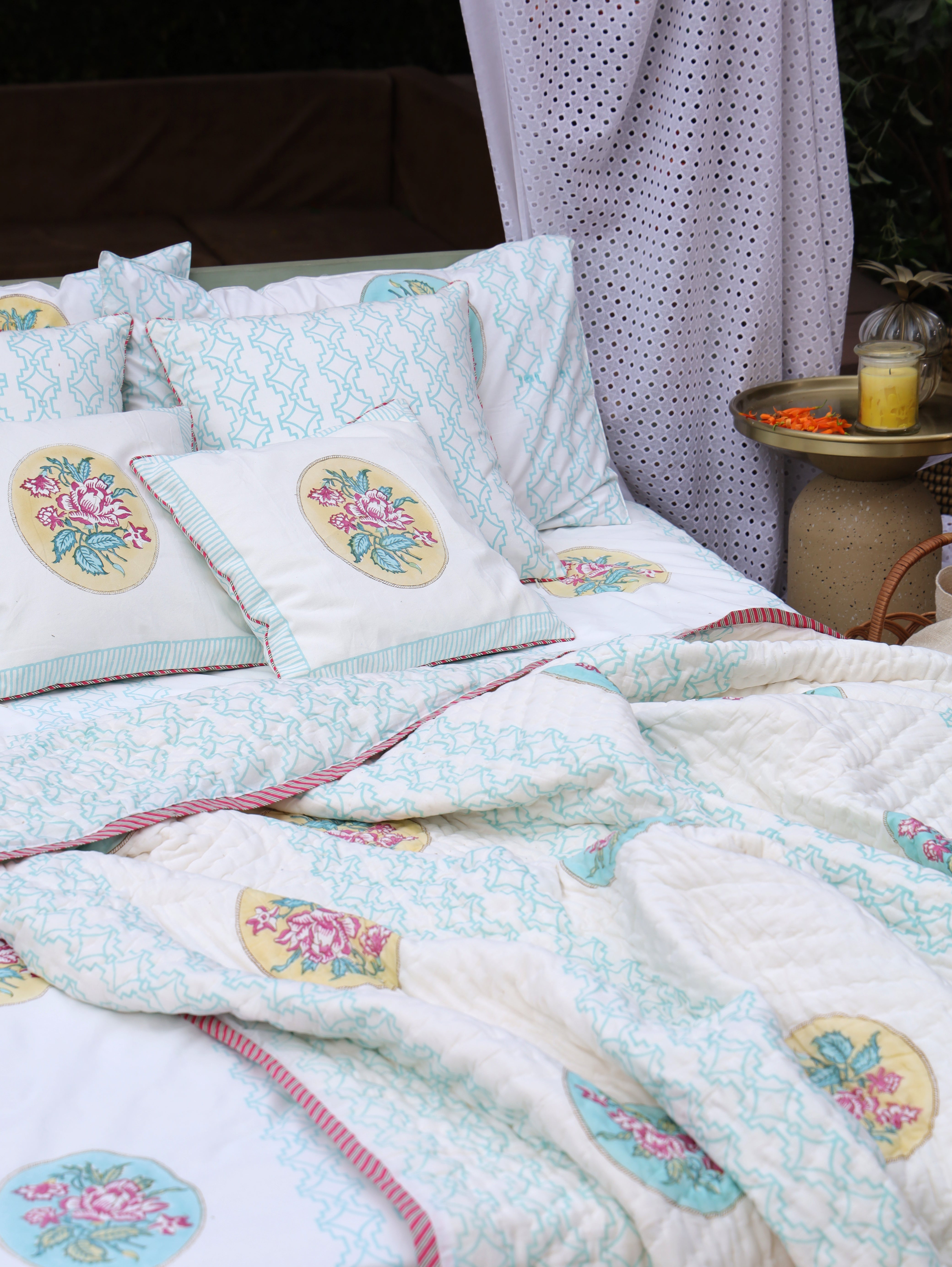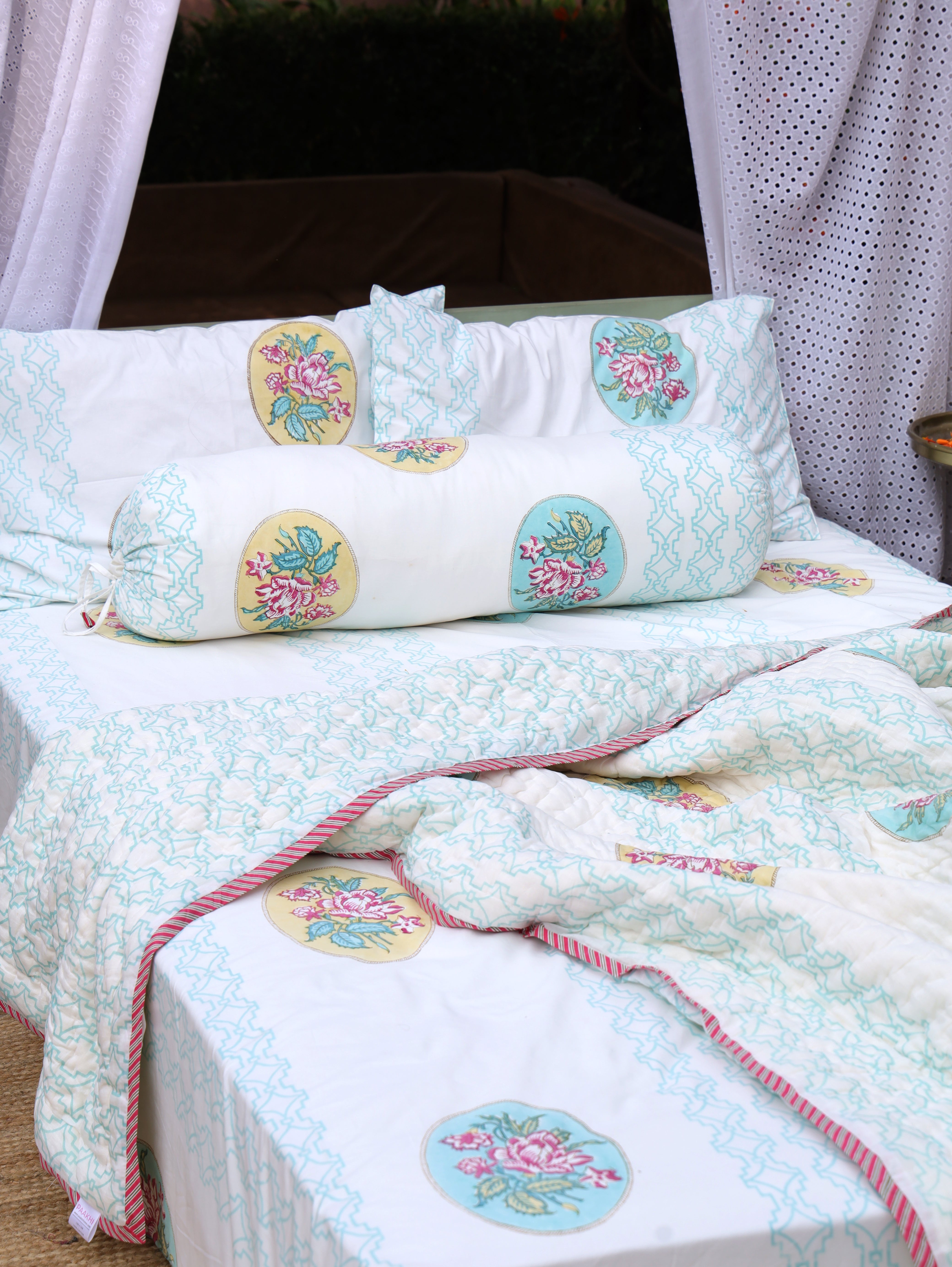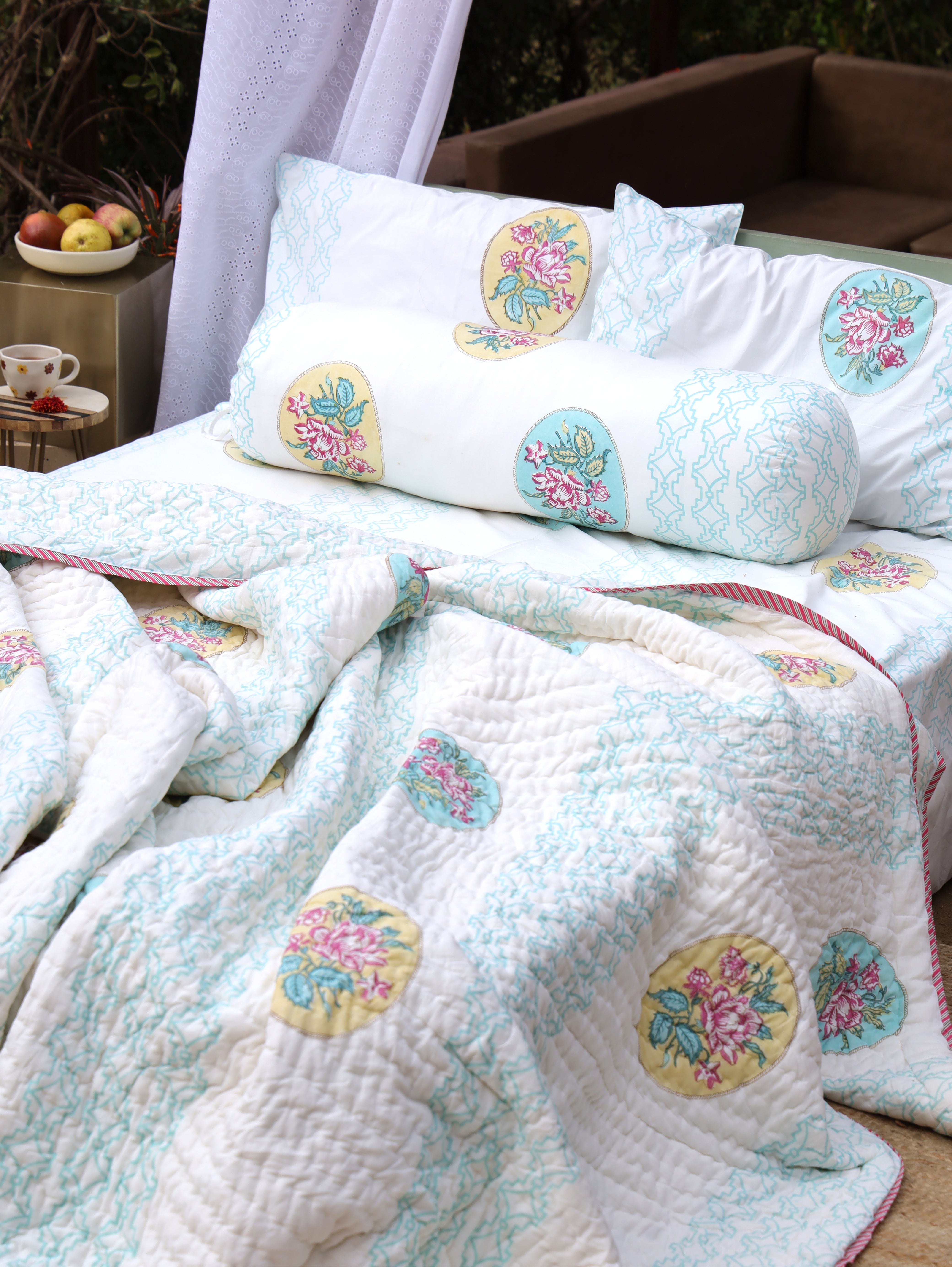 Handblock Printed Quilt, Bedsheet & Pillow Covers Set - Rosalia