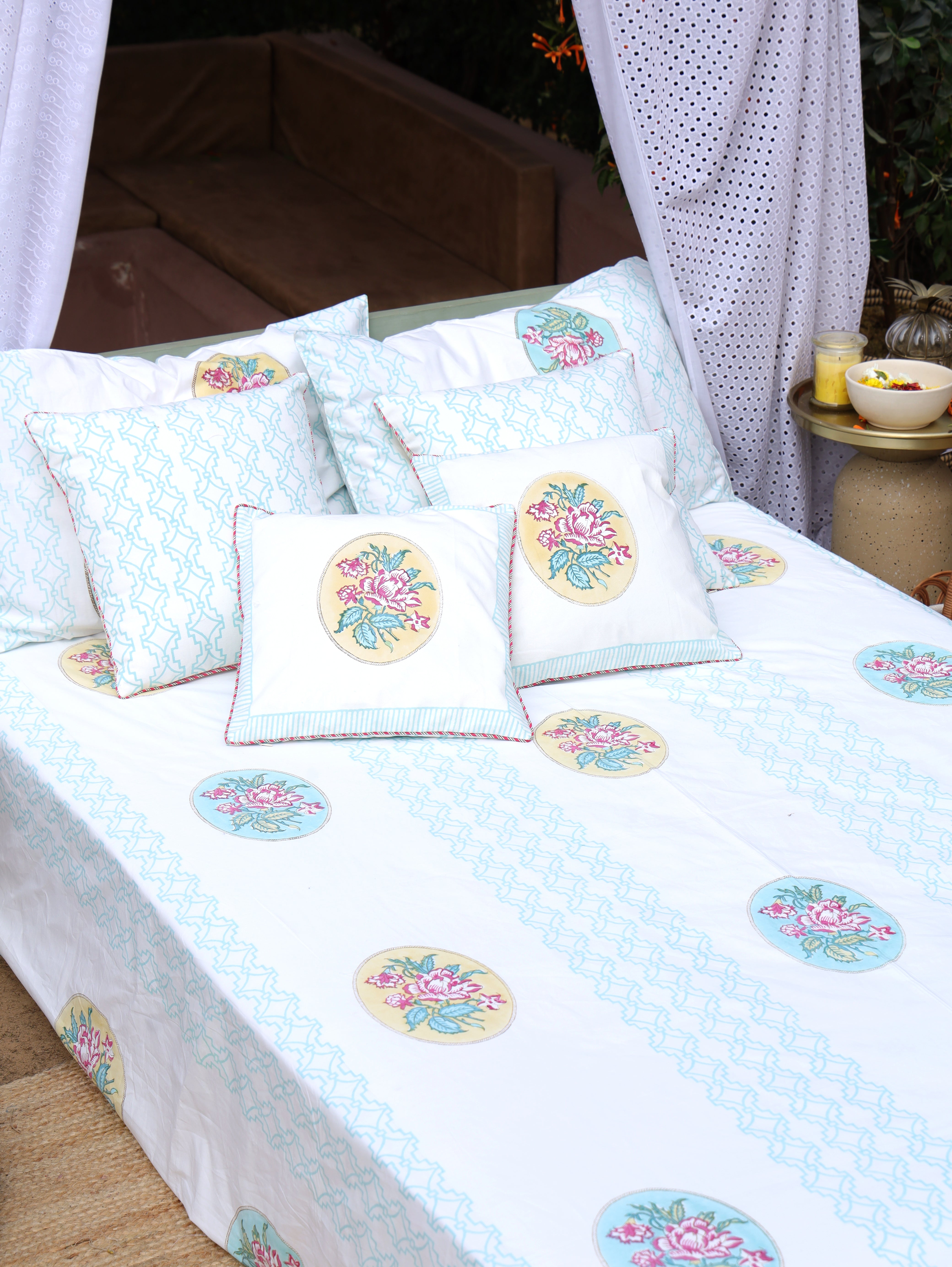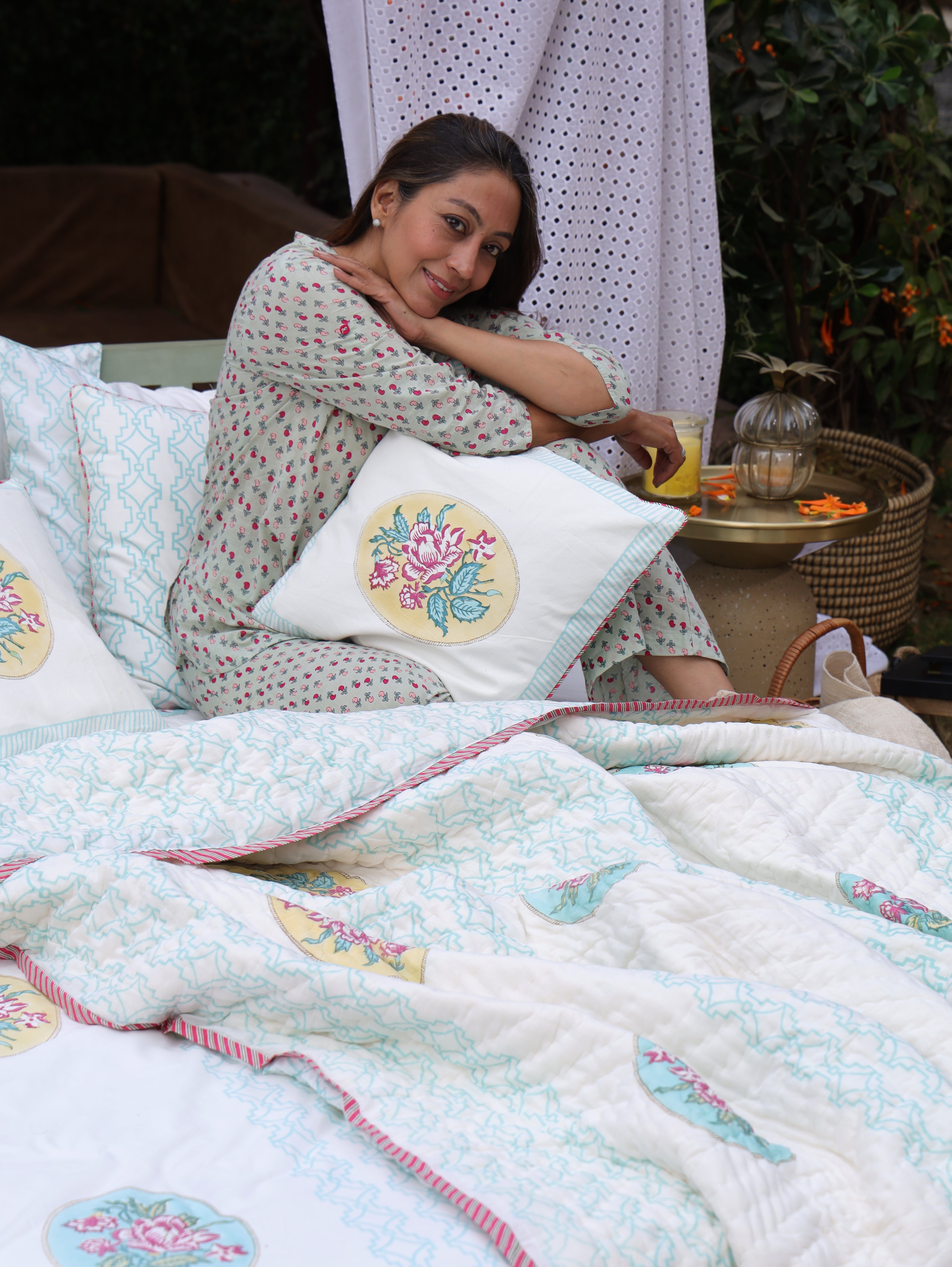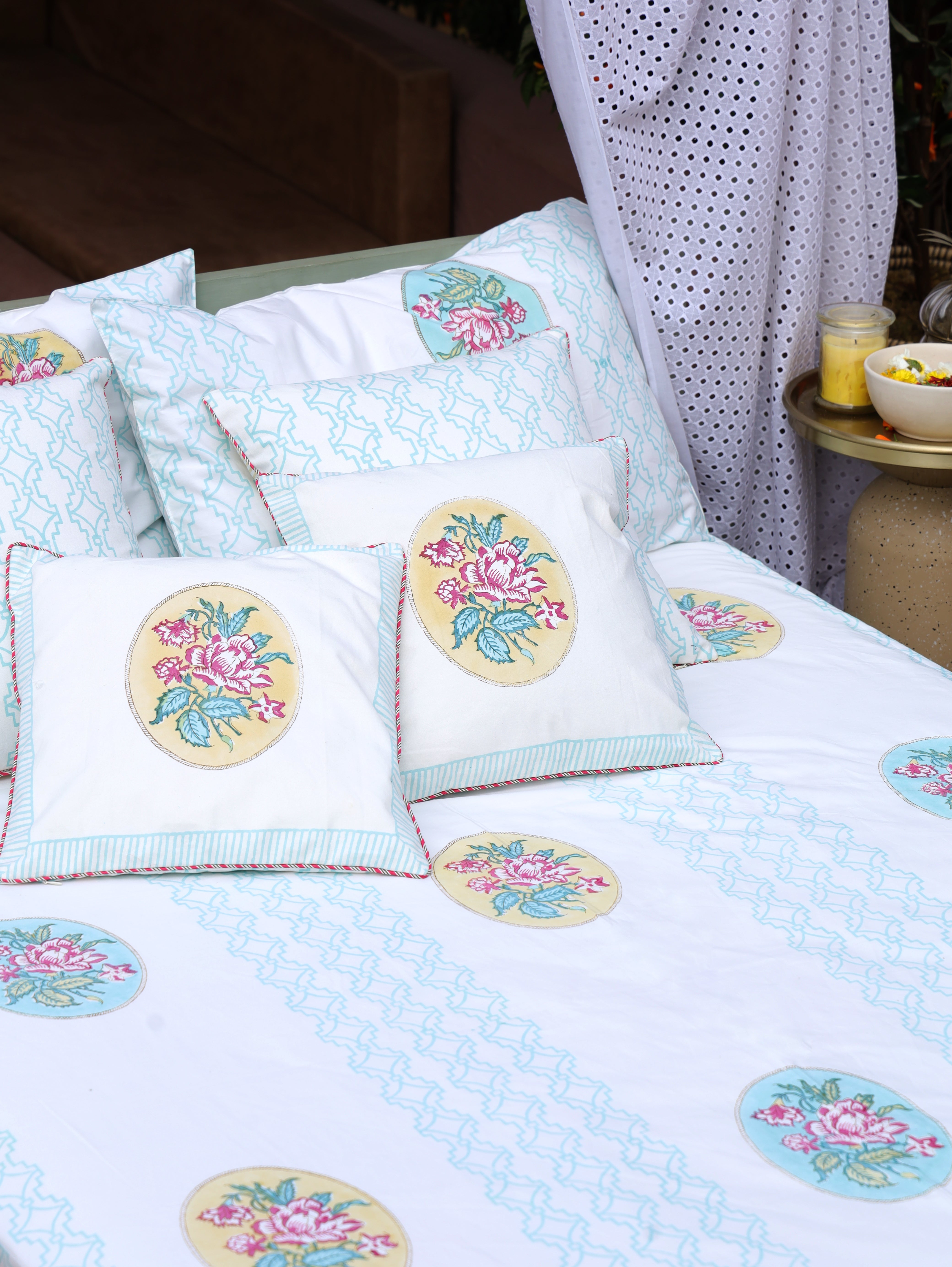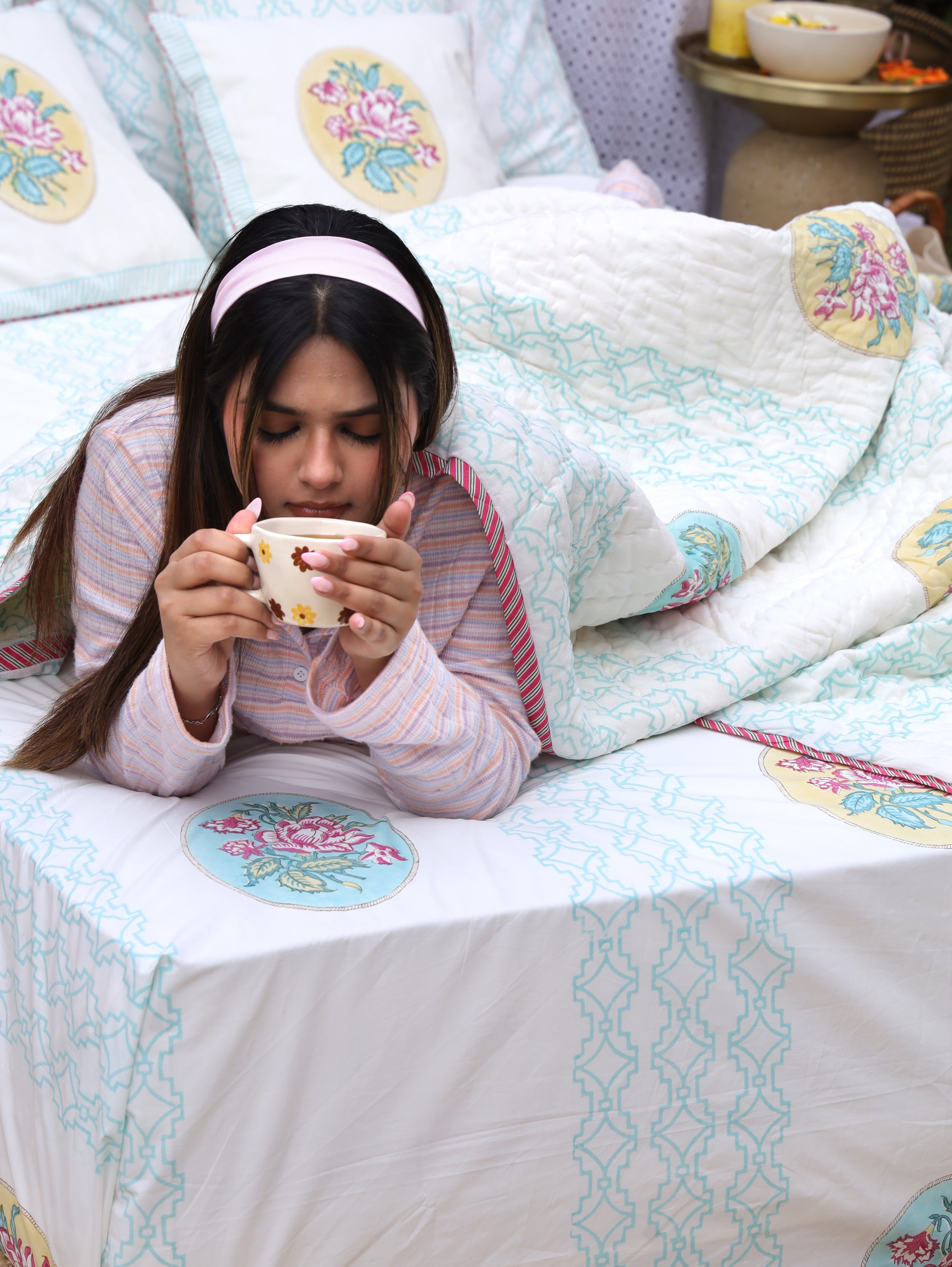 Handblock Printed Quilt, Bedsheet & Pillow Covers Set - Rosalia