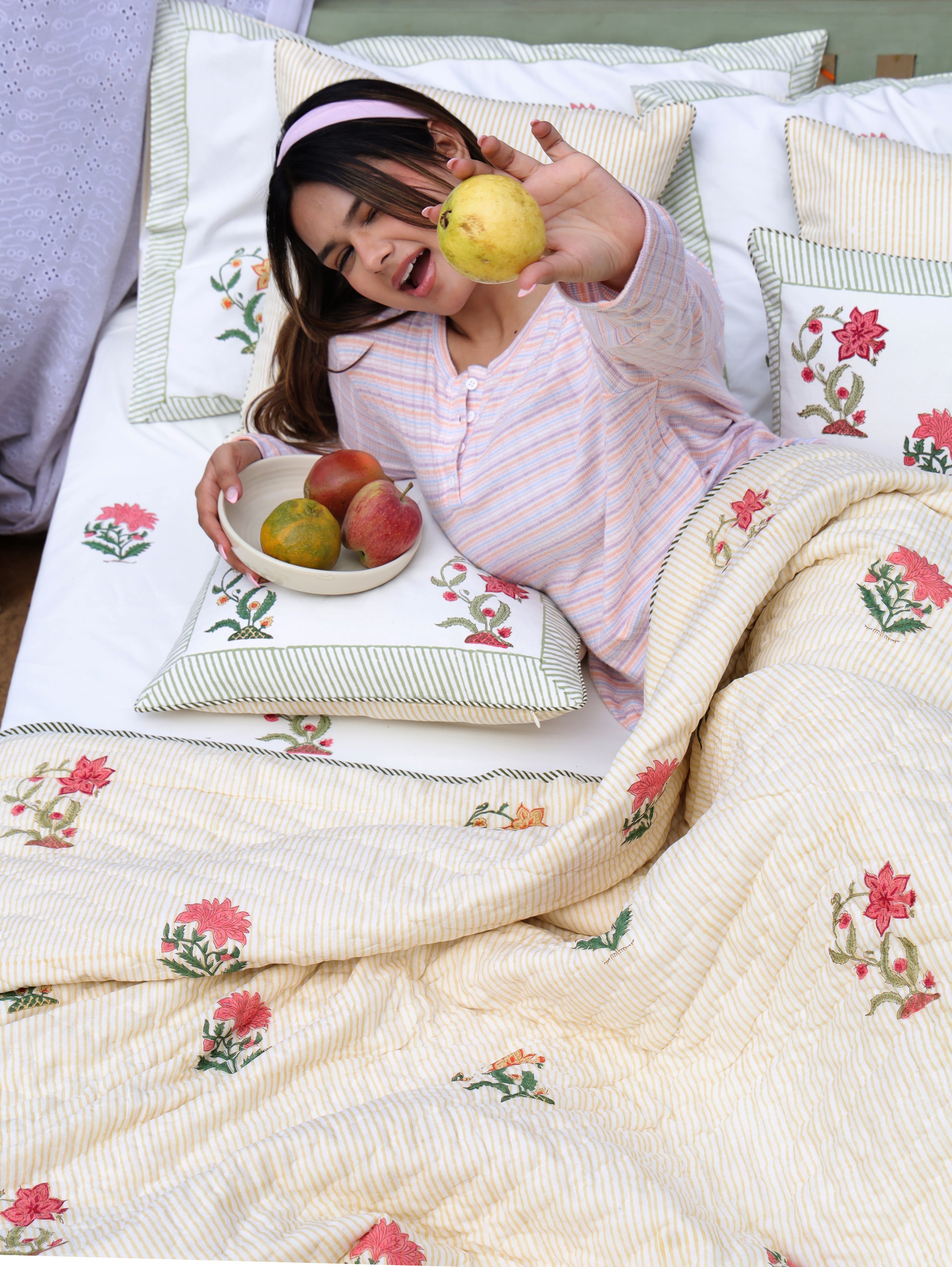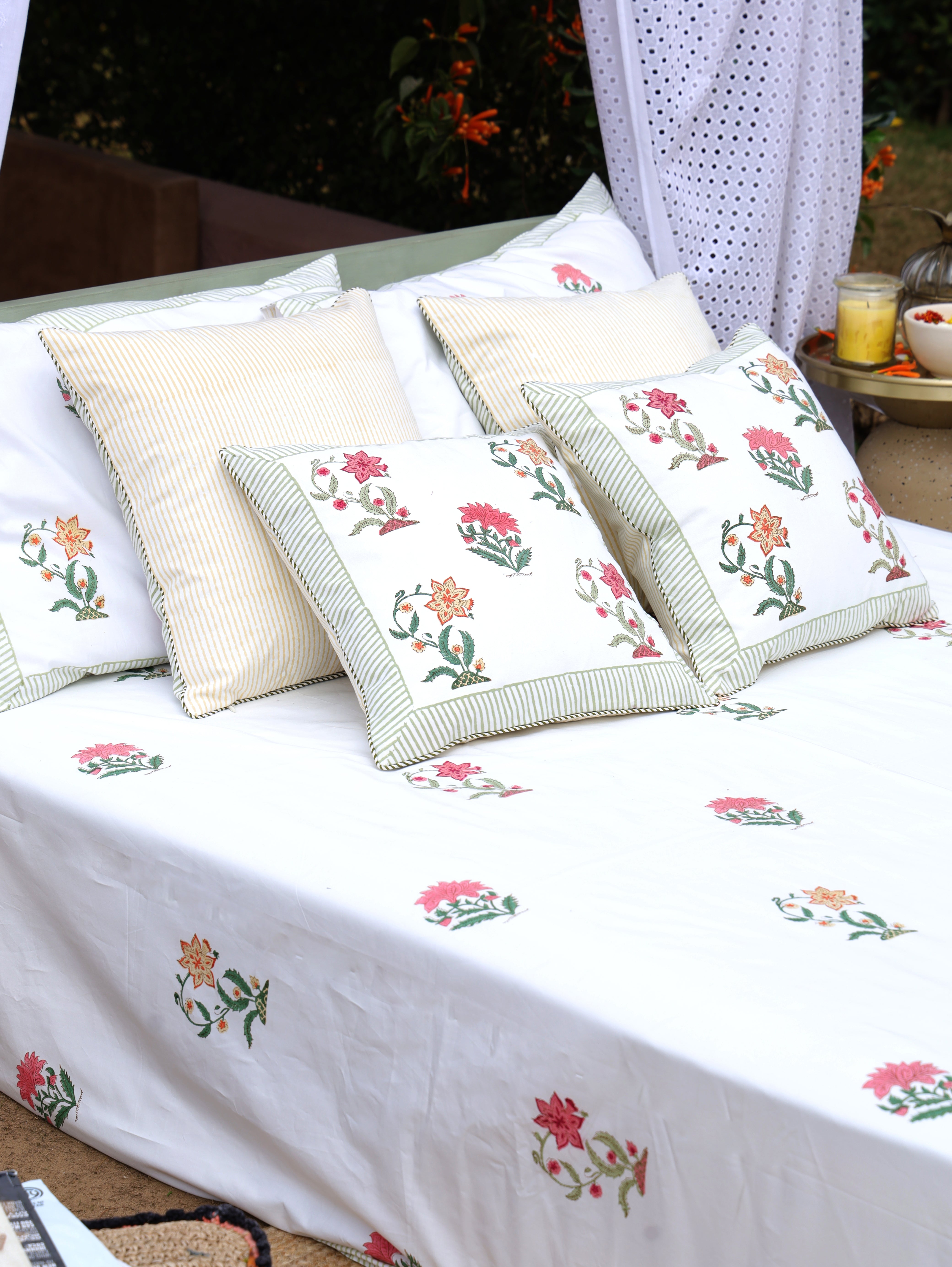 Handblock Printed Quilt, Bedsheet & Pillow Covers Set - Florenza