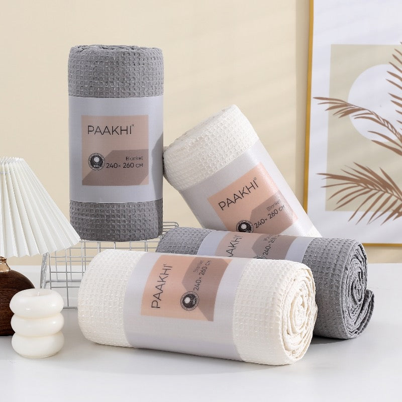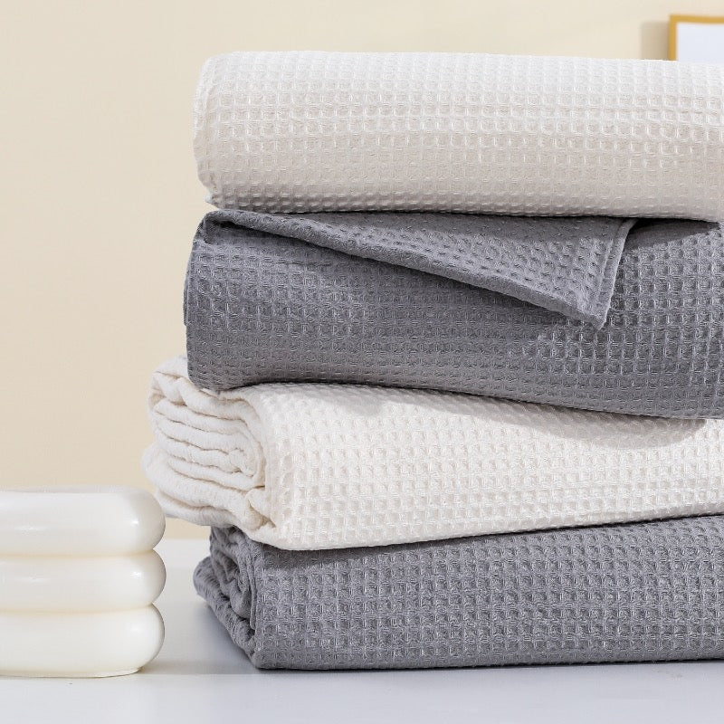 Oversized Cotton Waffle Blanket - Grey